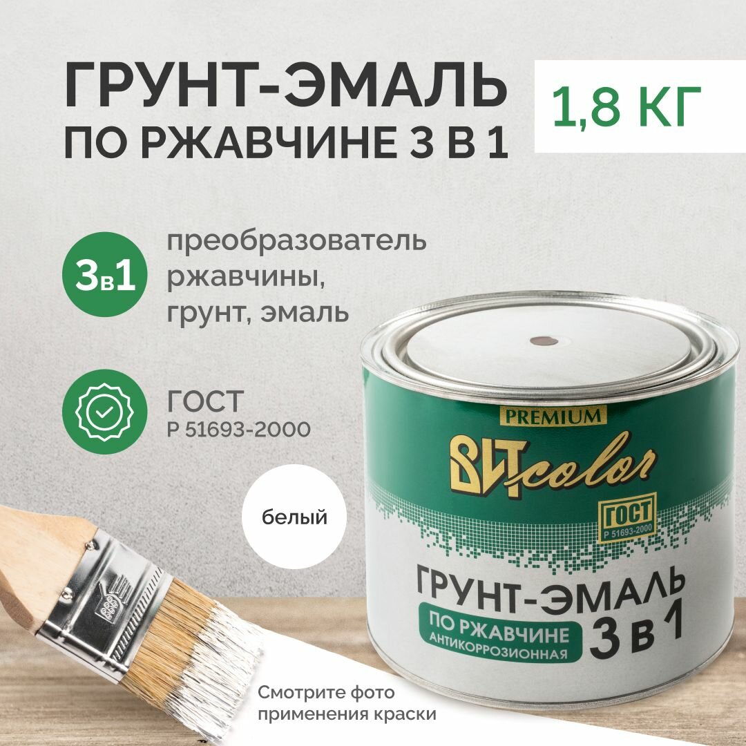 Купить Грунт эмаль по ржавчине 3 в 1 Вит color белая 1,8кг, краска по ржавчине для металла
