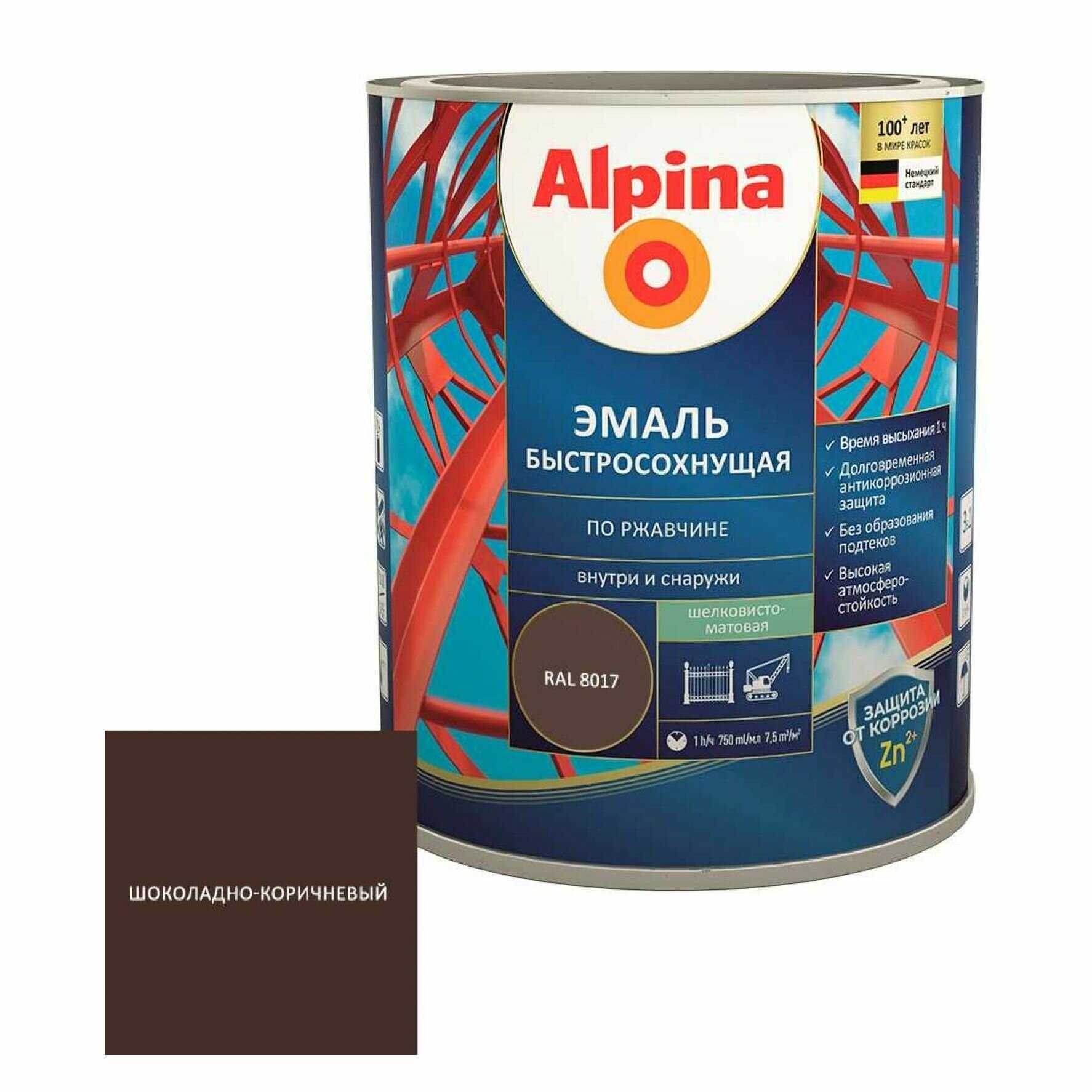 Купить Alpina эмаль быстросохнущая по ржавчине (шоколадный, RAL 8017, полуматовый, 0,75л)