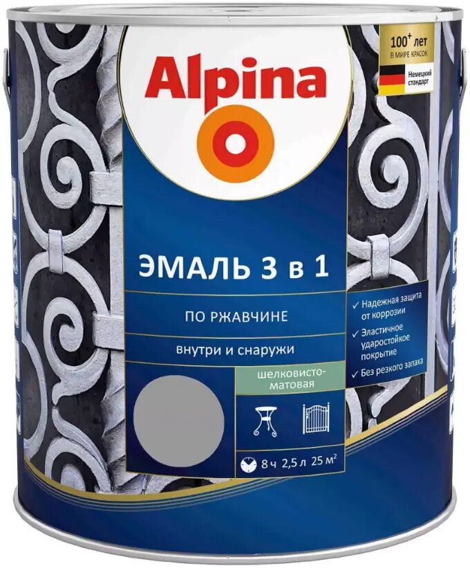 Alpina эмаль быстросохнущая по ржавчине (серый, RAL 7040, полуматовый, 2,5л)