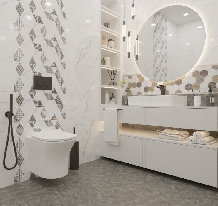 Керамическая плитка настенная Тянь-Шань Дамон под мрамор глянцевая Декор Гексагон TP3628H, 60 х 30 см, 1,8 м2 интересное: