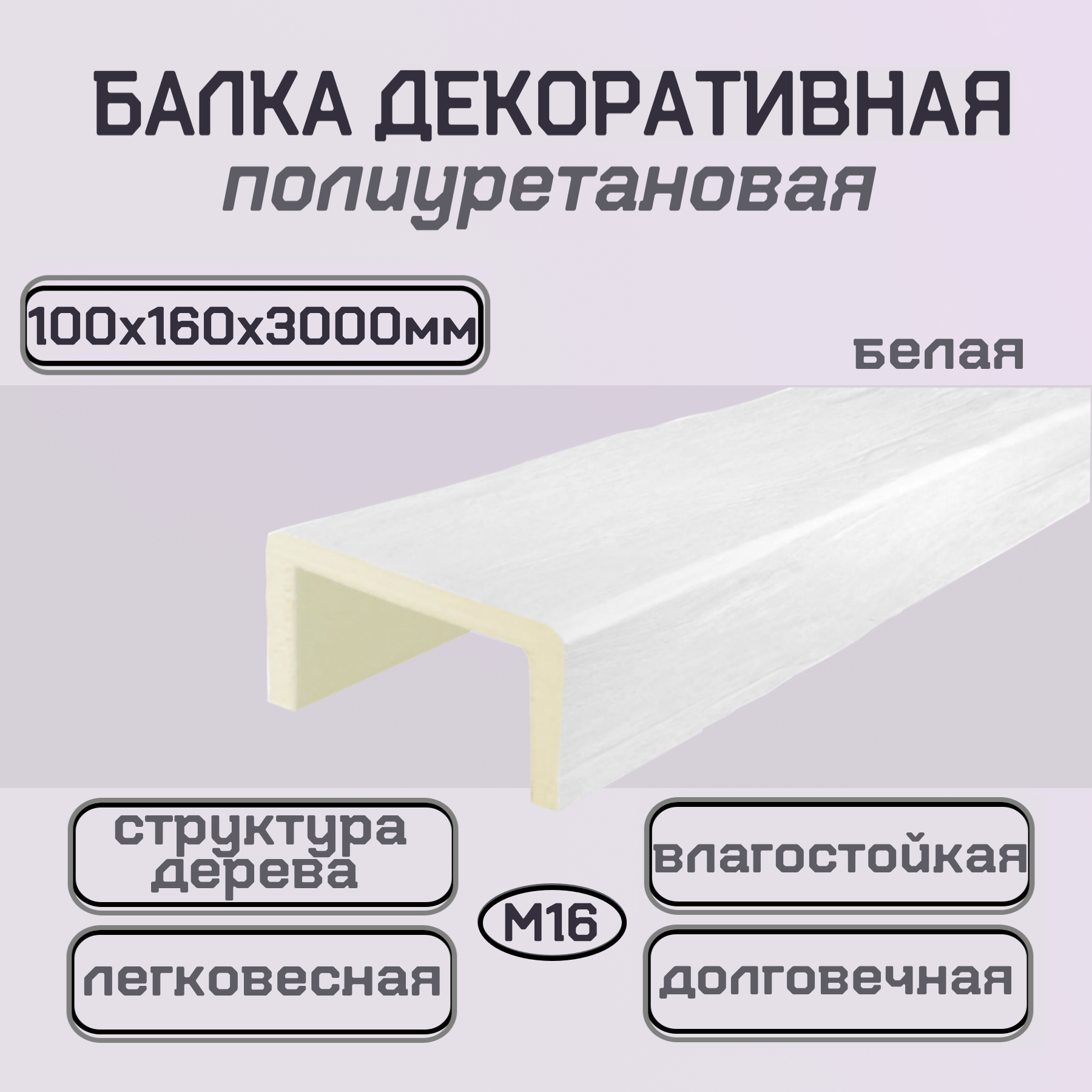 Купить Потолочная балка декоративная из полиуретана белая 100ммх160ммх3000мм