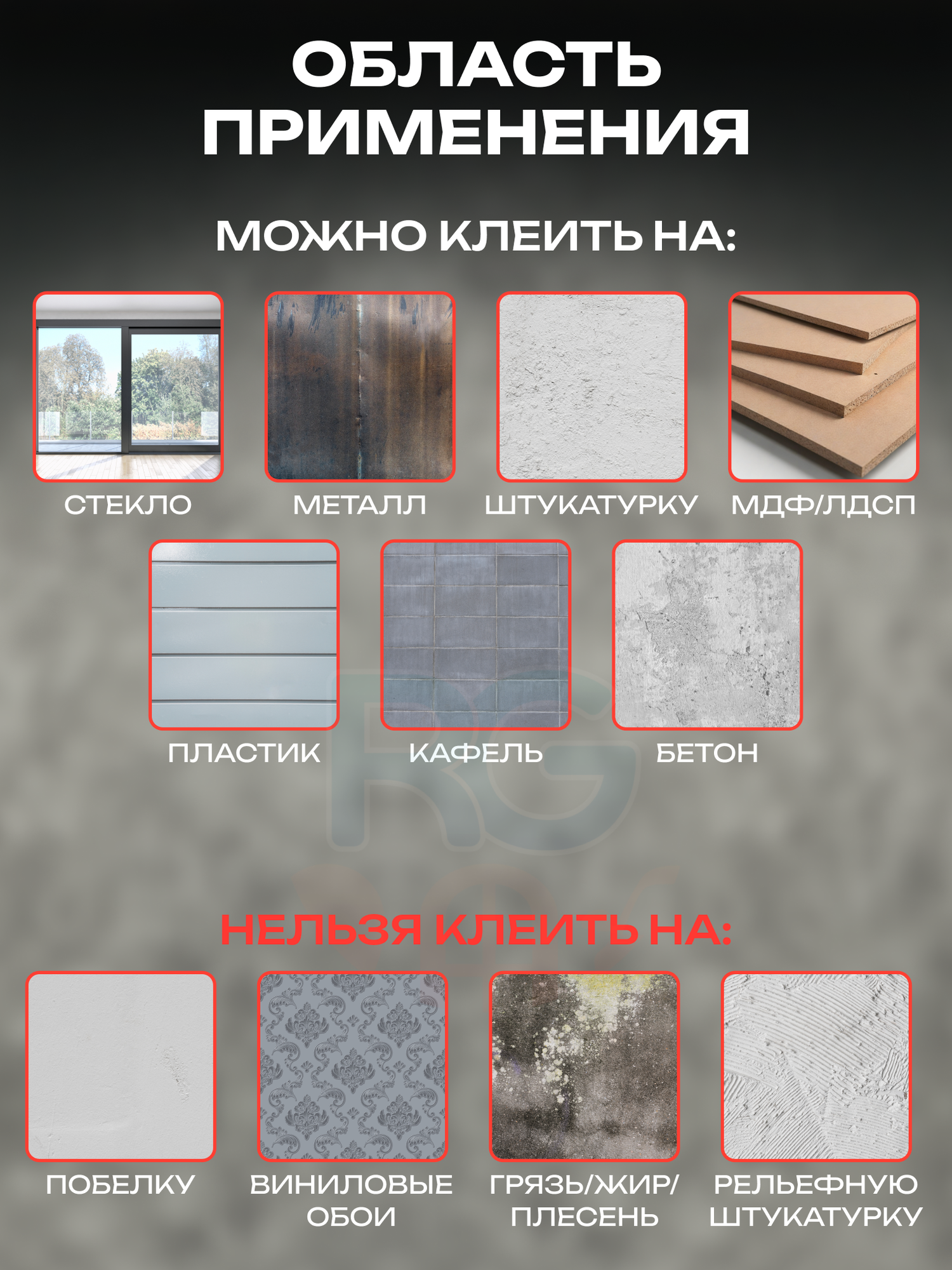 | Особенности | водостойкие / износостойкие / моющиеся |
