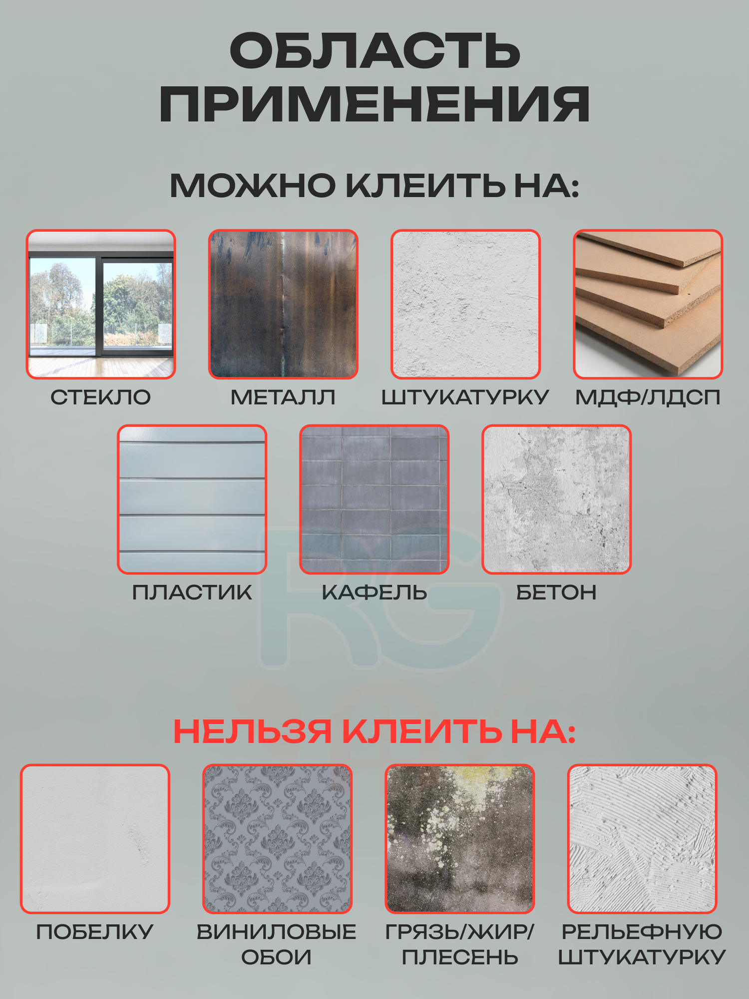 | Особенности | водостойкие / износостойкие / моющиеся |