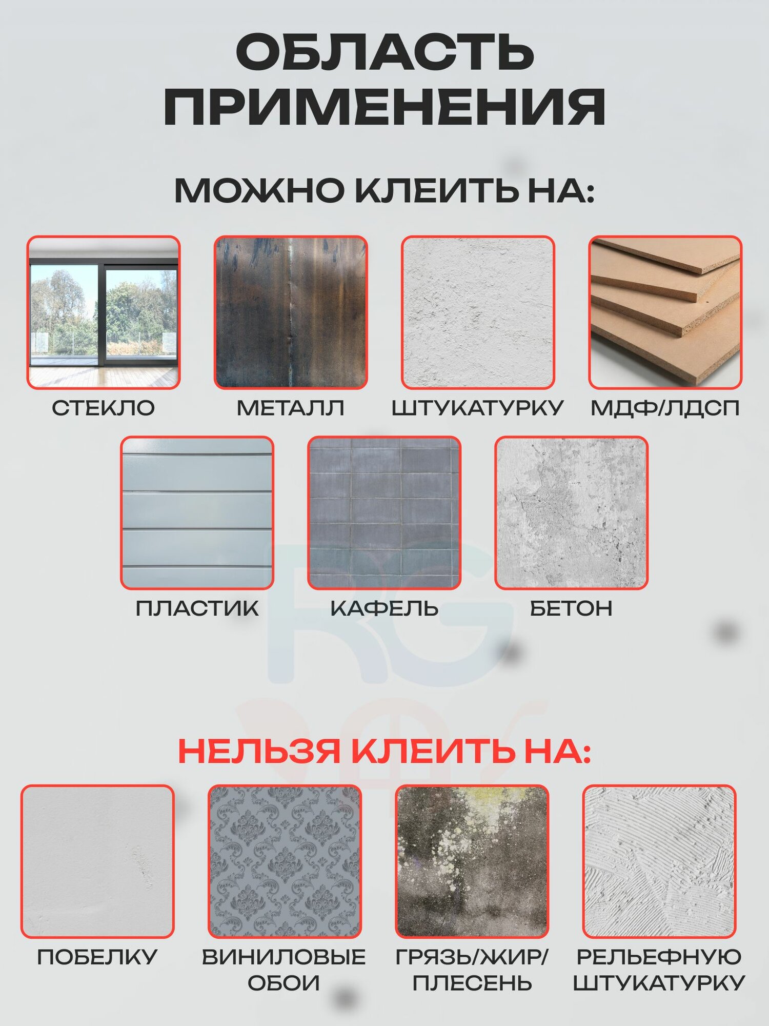 | Особенности | водостойкие / износостойкие / моющиеся |