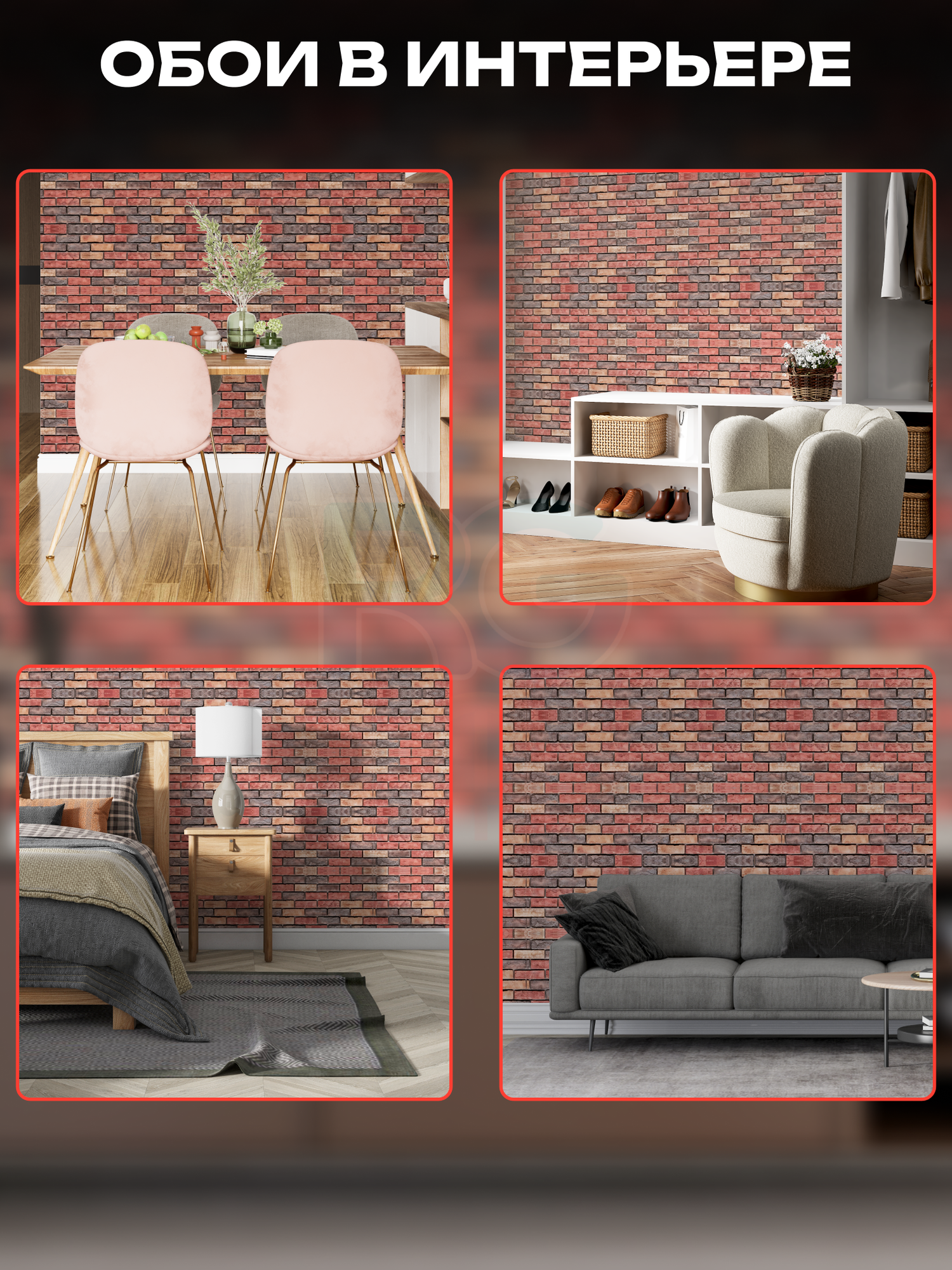 Самоклеящиеся обои в спальню и для кухни 50х280 см 2 шт цвет: красный кирпич
