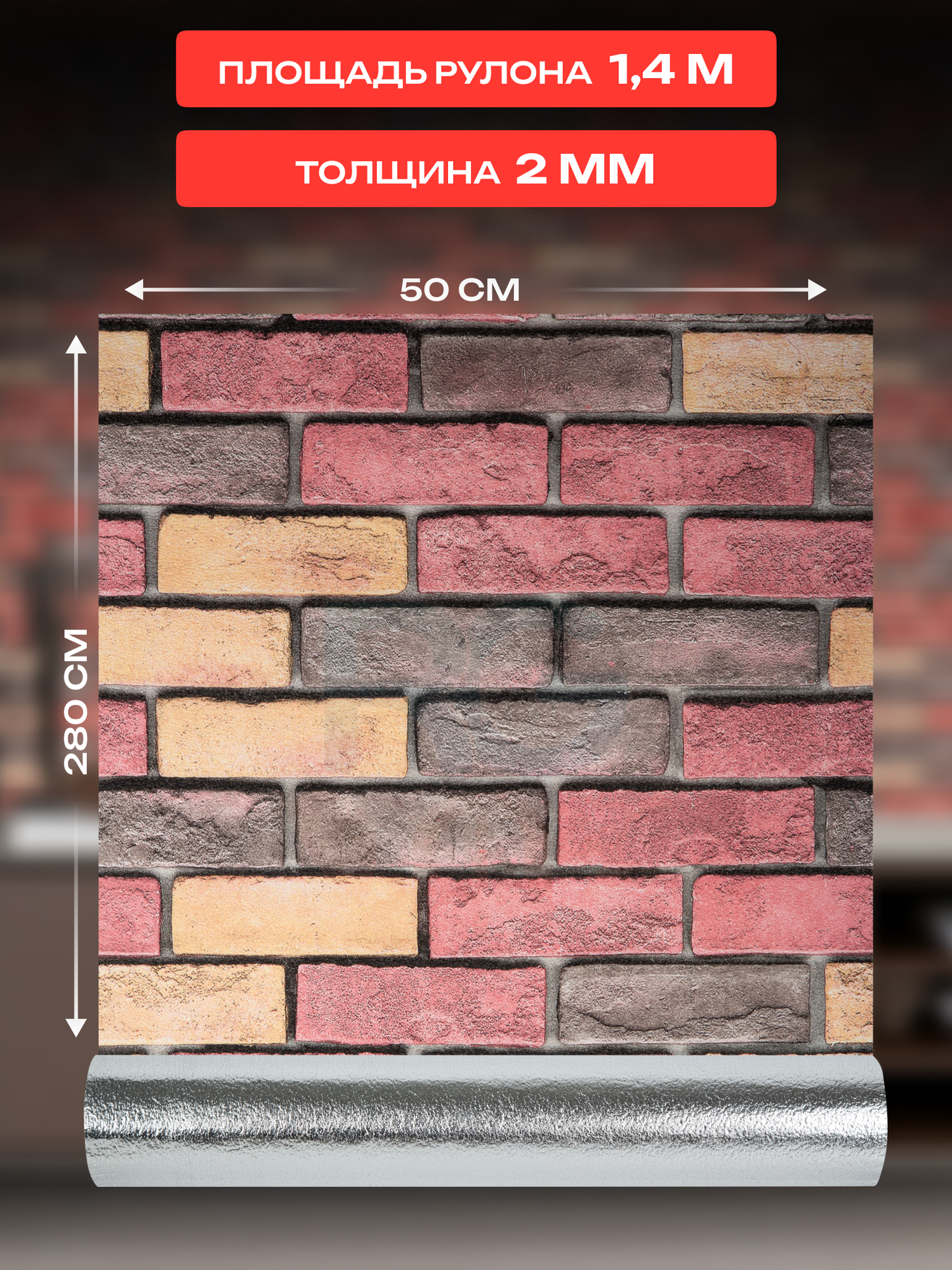 Купить Обои кирпич в прихожую. Обои для кухни самоклеющиеся, плотные 50х280 см цвет: красный кирпич