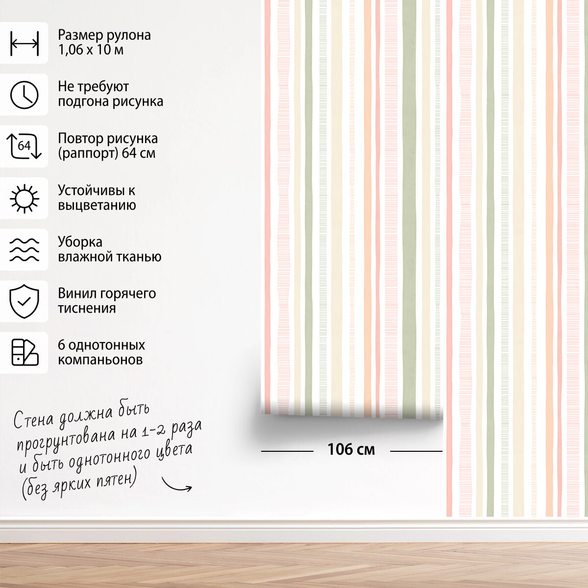 Обои флизелиновые виниловые, полоса зелено-розовая, метровые, для детской, для кухни Lines интересное: