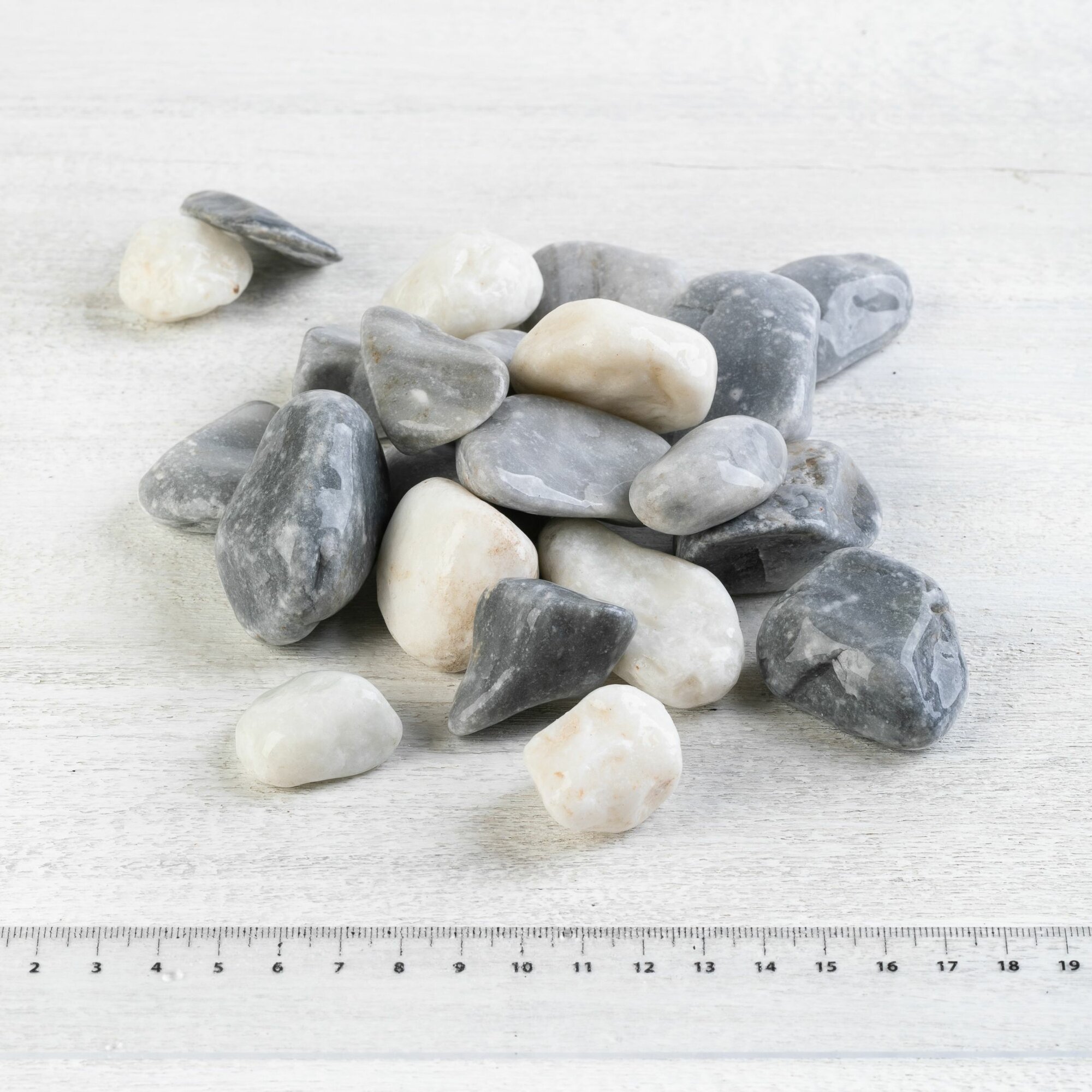 Камень натуральный мрамор микс белый, серый, голубой 20-40 мм (375), 10 кг. Галька