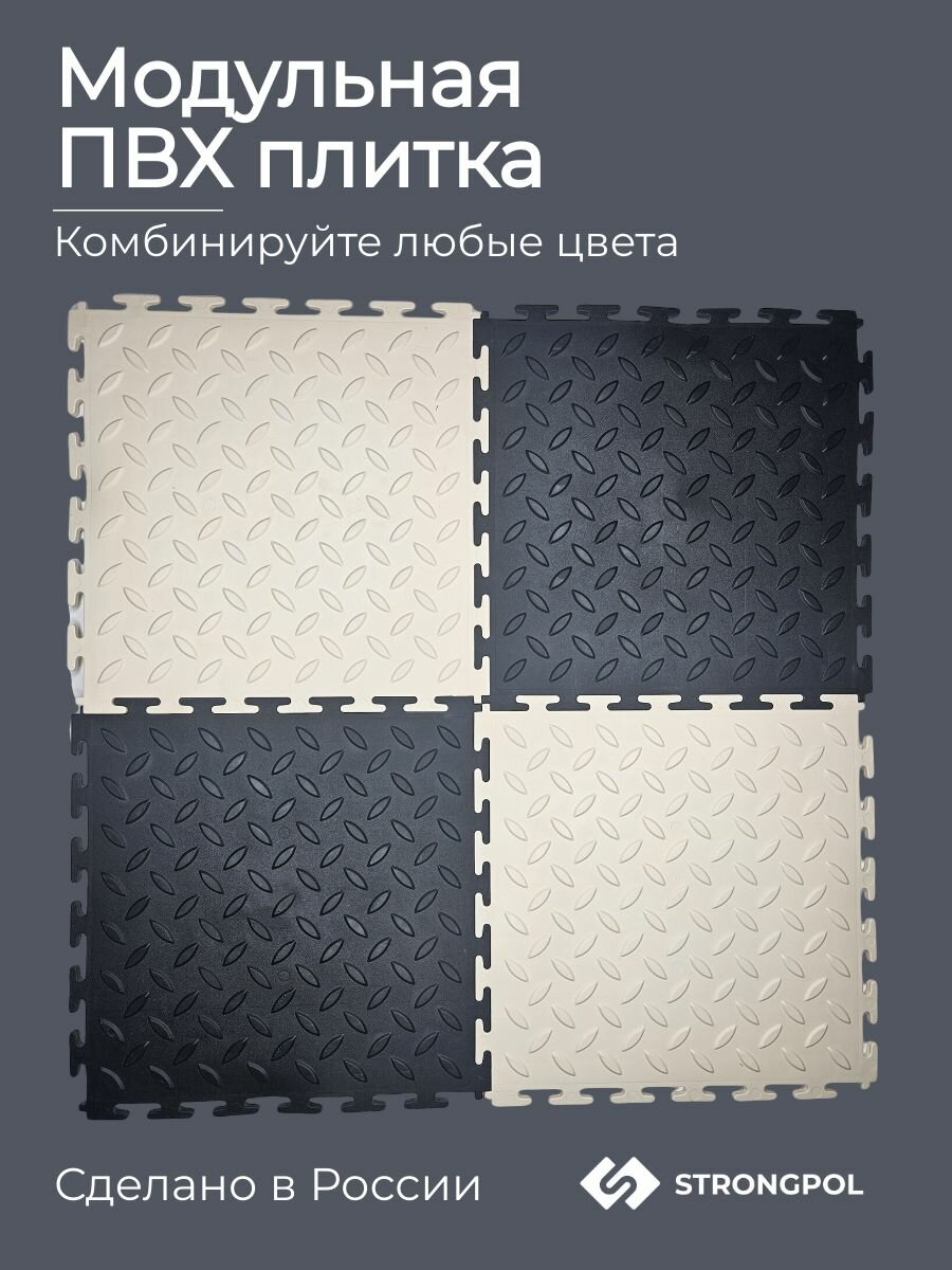 Модульная плитка ПВХ для гаража 1 м² Strongpol серый Металл рис / Модульное покрытие для спортзала metal_gray