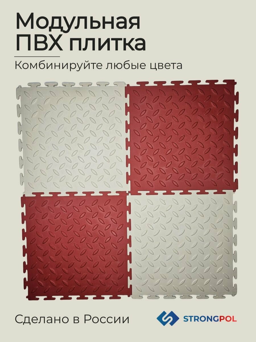 Модульная плитка ПВХ для гаража 1 м² Strongpol красный Металл рис / Модульное покрытие для спортзала metall_red