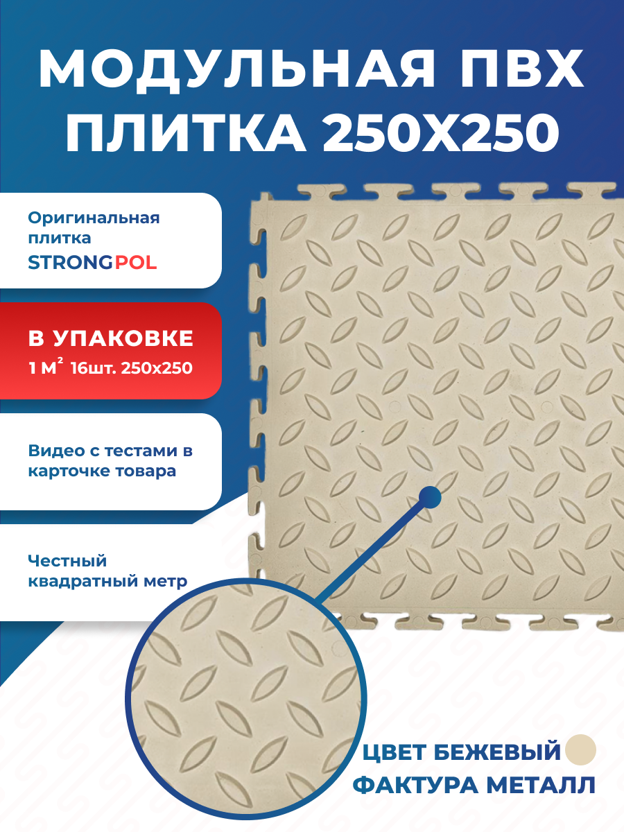 СохранитьМодульная плитка ПВХ для гаража 1 м² Strongpol бежевый Металл рис / Модульное покрытие для спортзала metall_beige интересное:
