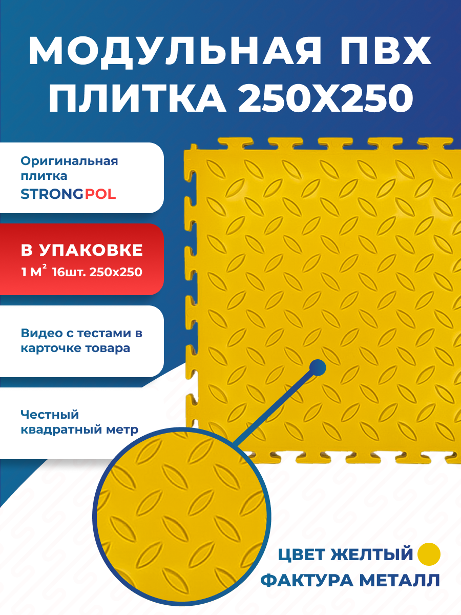 СохранитьМодульная плитка ПВХ для гаража 1 м² Strongpol желтый Металл рис / Модульное покрытие для спортзала metal_yellow интересное: