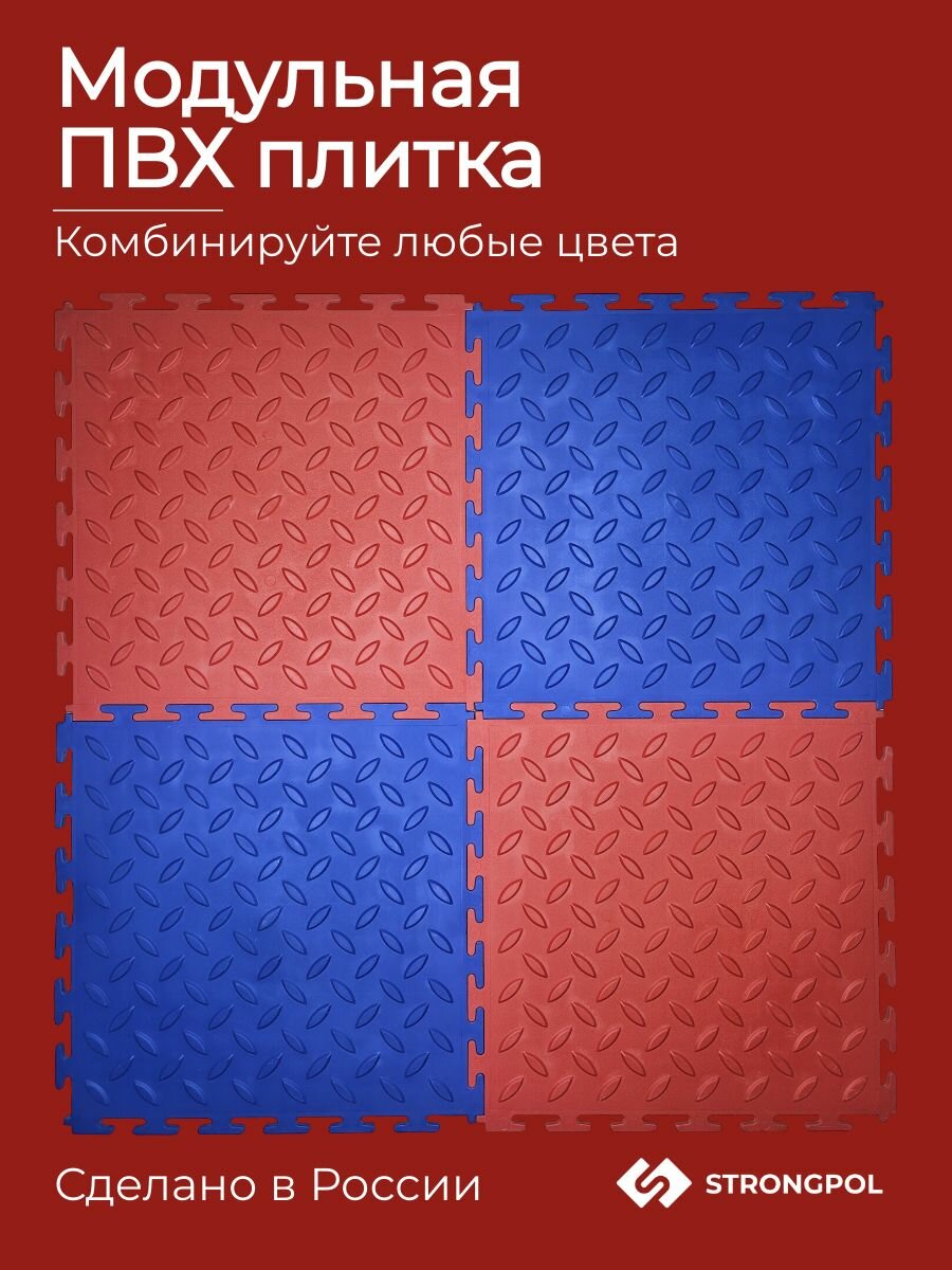 СохранитьМодульная плитка ПВХ для гаража 1 м² Strongpol красный Металл рис / Модульное покрытие для спортзала metall_red интересное: