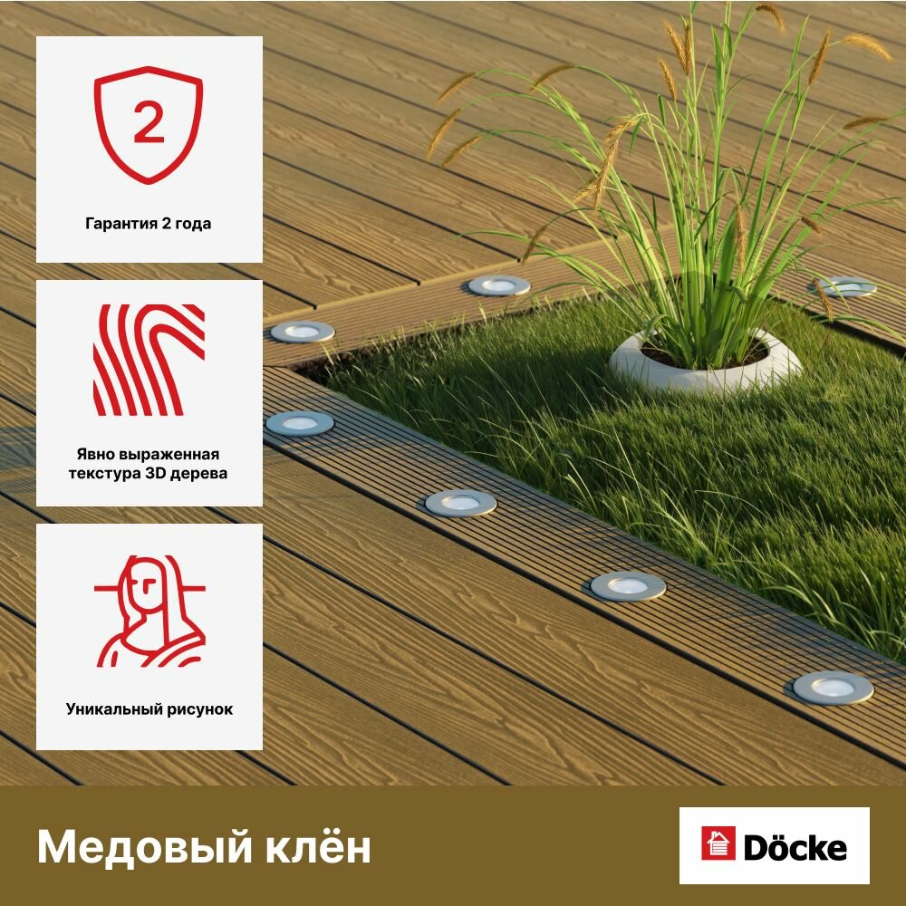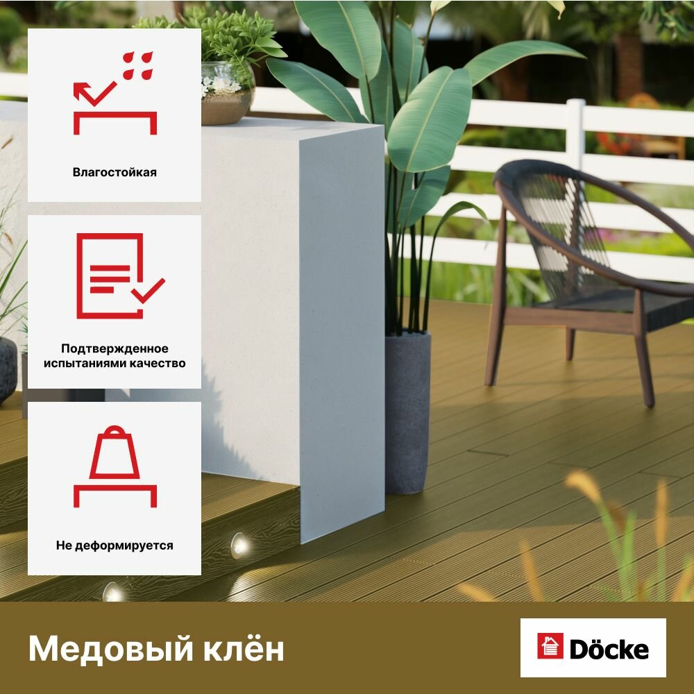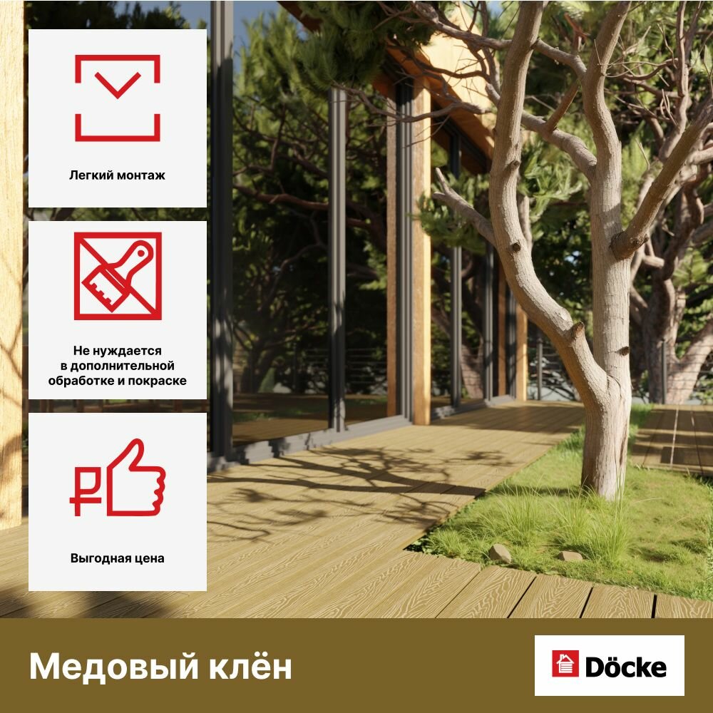 СохранитьТеррасная доска ДПК Docke Decking Urban 24*150*1500 (3 штуки). Медовый клен интересное: