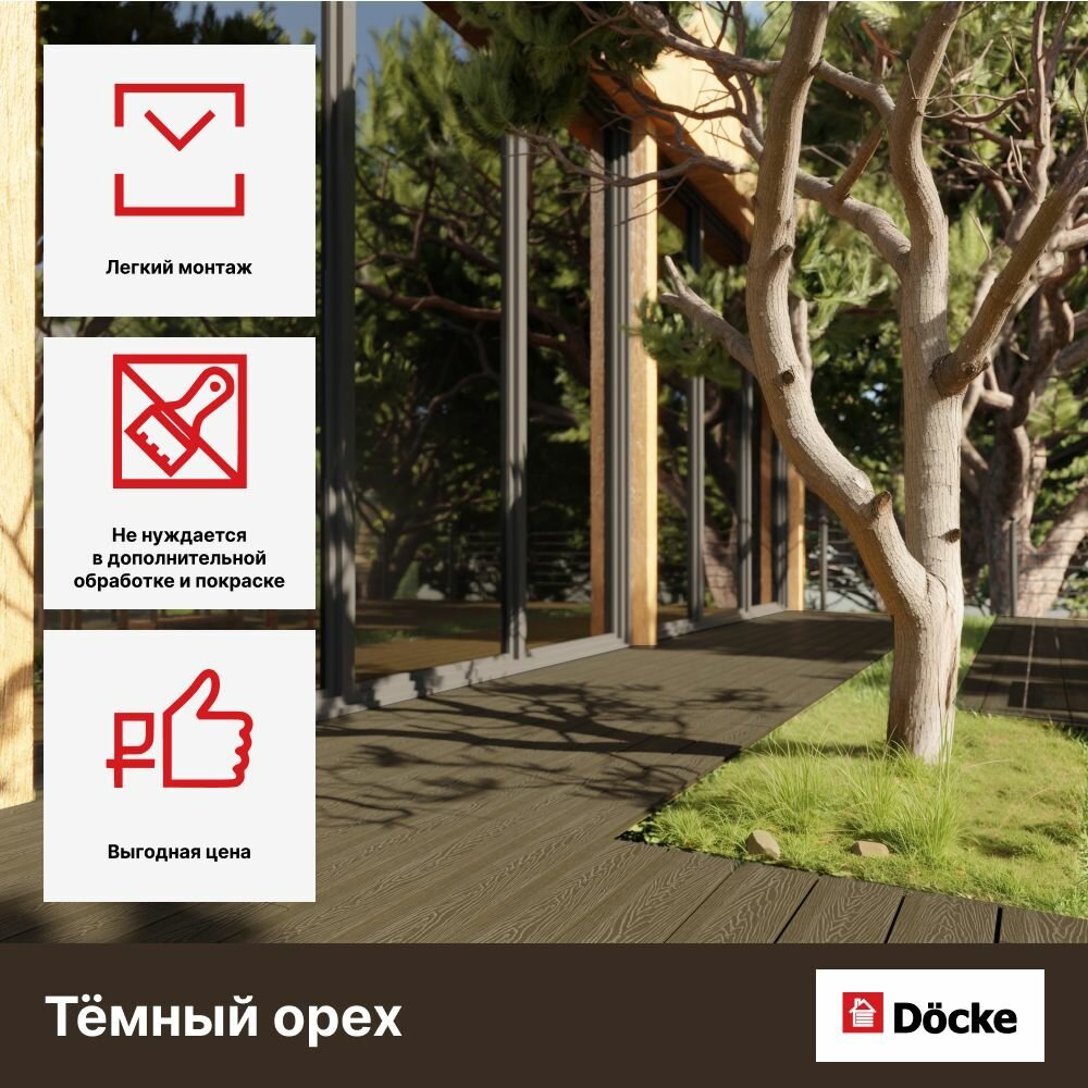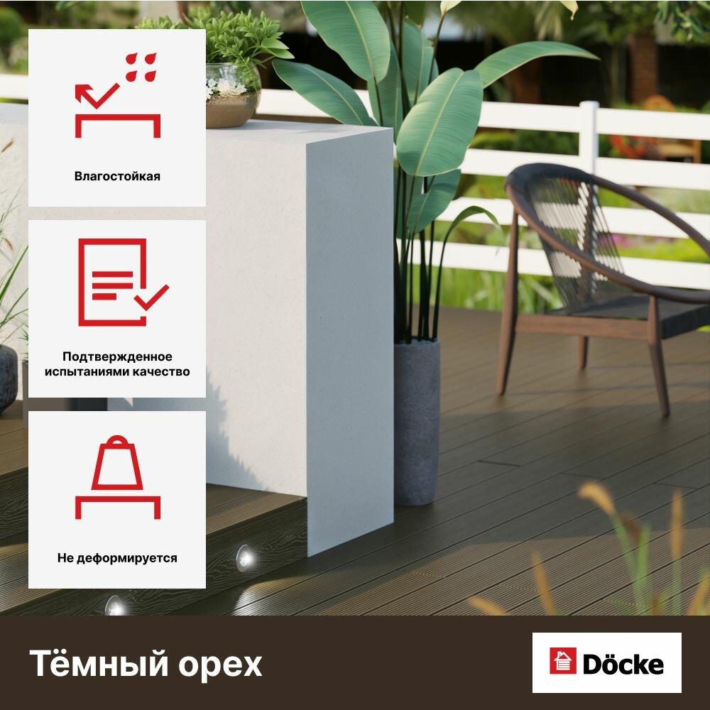 СохранитьТеррасная доска ДПК Docke Decking Urban 24*150*1500 (3 штуки). Темный орех интересное: