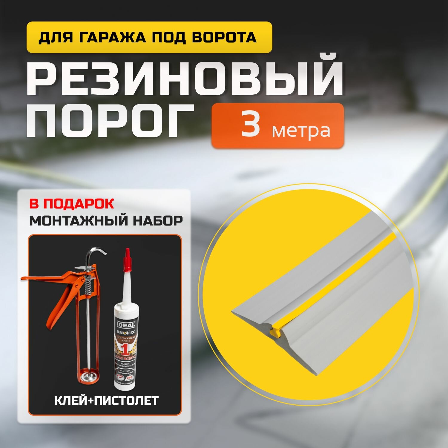 Резиновый порог для гаража под ворота 90х15, уплотнительная лента на пол, 3м