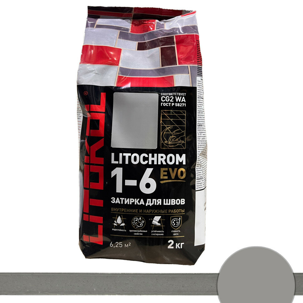 Затирка для плитки Litokol Litochrom 1-6 EVO LE.125 дымчатая серая 2 кг интересное: