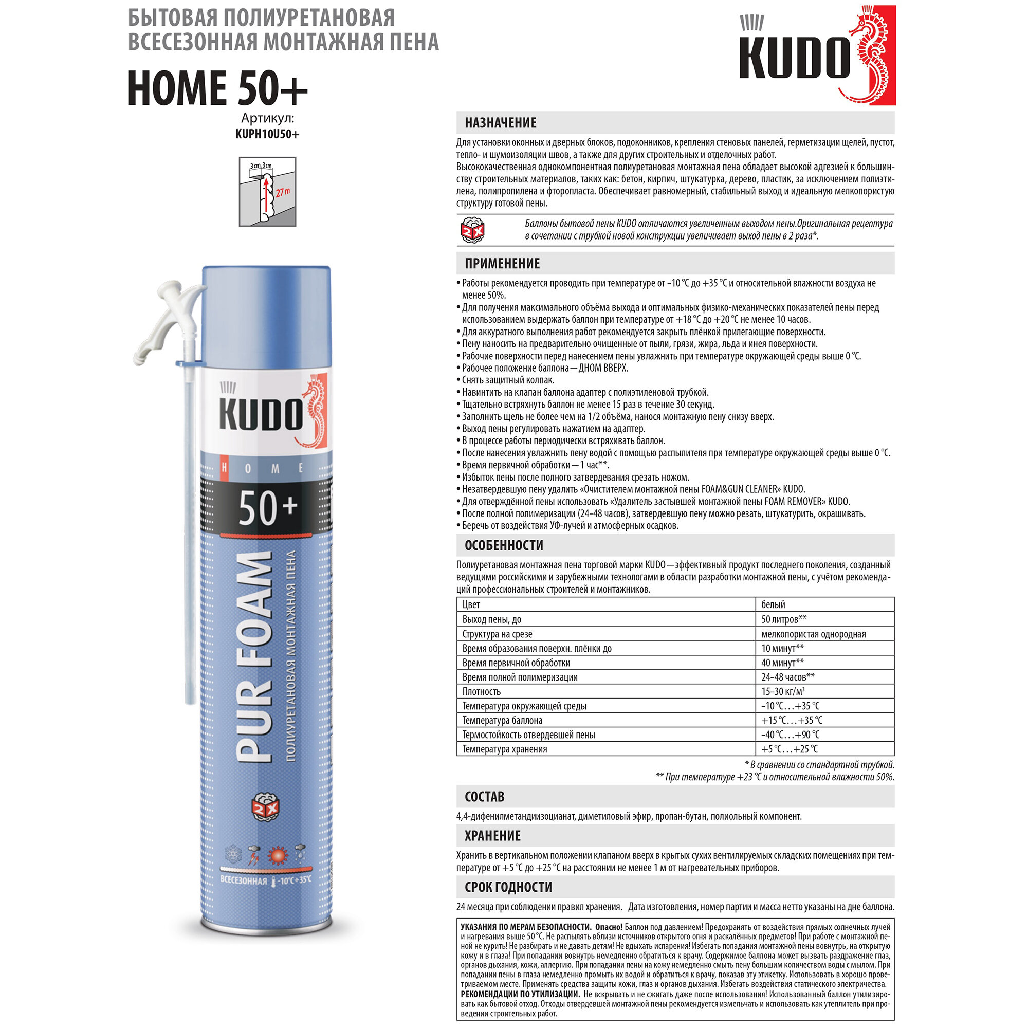 Монтажная пена KUDO "Home 50+", бытовая, всесезонная, 1000 мл (135156) интересное:
