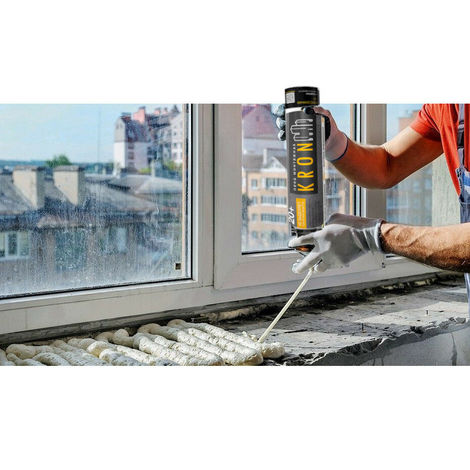 Пена бытовая (с трубочкой) монтажная KRONBUILD 20+. Для окон, дверей, стен из бетона, кирпича, дерева. интересное: