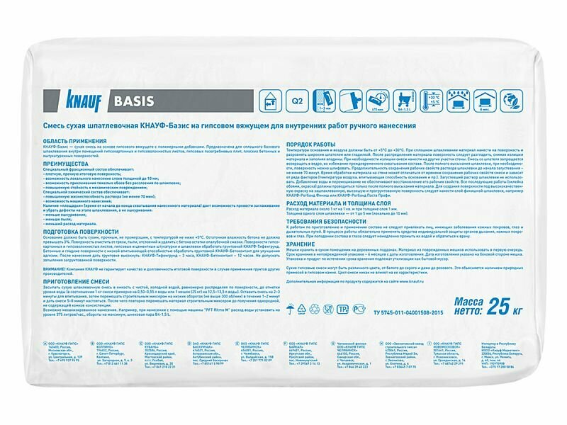 Кнауф Базис Шпаклевка гипсовая базовая 25 кг / Knauf Базис Шпаклевка гипсовая базовая 25 кг интересное: