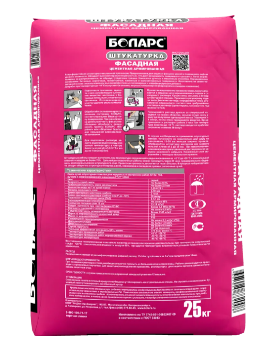 Ниже Вы можете прочитать отзывы на Штукатурка цементная Боларс фасадная 25 кг, ознакомится с подробными характеристиками, посмотреть интересные обзоры и фотографии на Штукатурка цементная Боларс фасадная 25 кг.