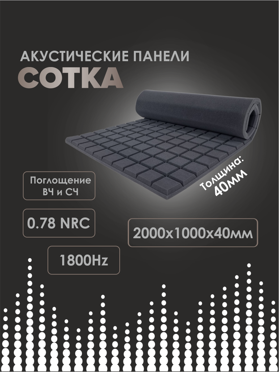 Акустический поролон Сотка 4 листа/ 2000х1000х40мм темно-серого цвета