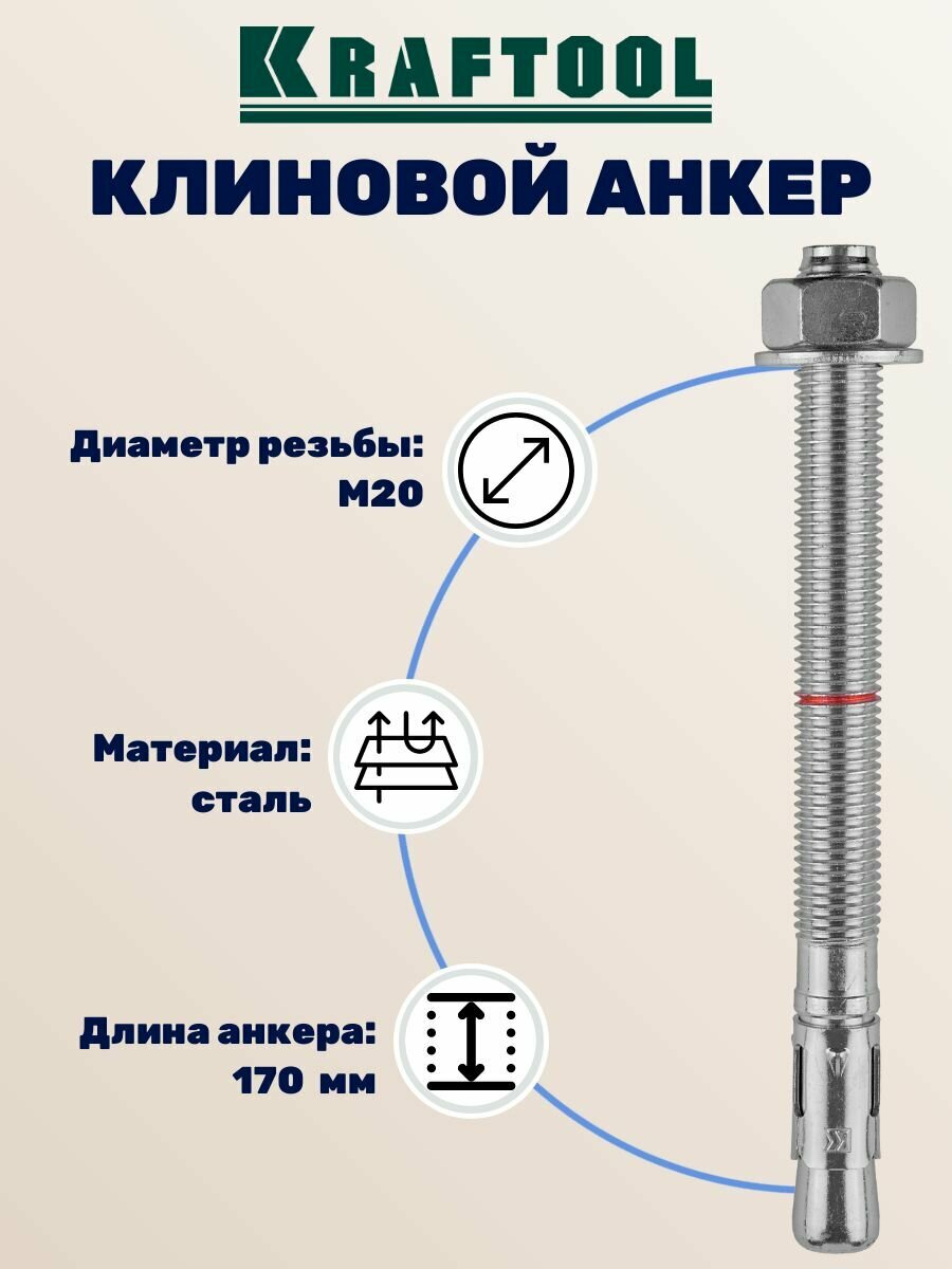 Купить Клиновой анкер KRAFTOOL ETA Опция 7 М20x170 10шт. (302184-20-170)