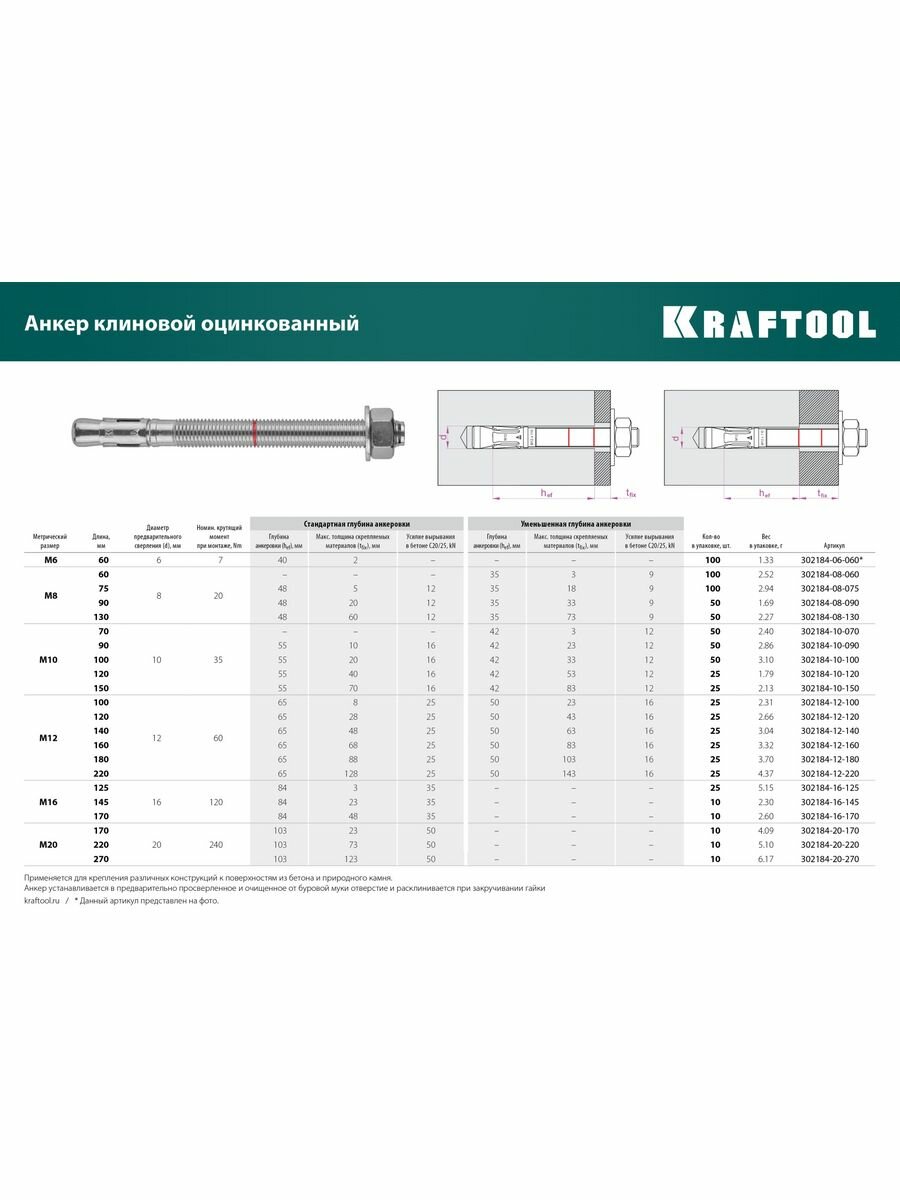 Ниже Вы можете прочитать отзывы на Клиновой анкер KRAFTOOL ETA Опция 7 М20x170 10шт. (302184-20-170), ознакомится с подробными характеристиками, посмотреть интересные обзоры и фотографии на Клиновой анкер KRAFTOOL ETA Опция 7 М20x170 10шт. (302184-20-170).