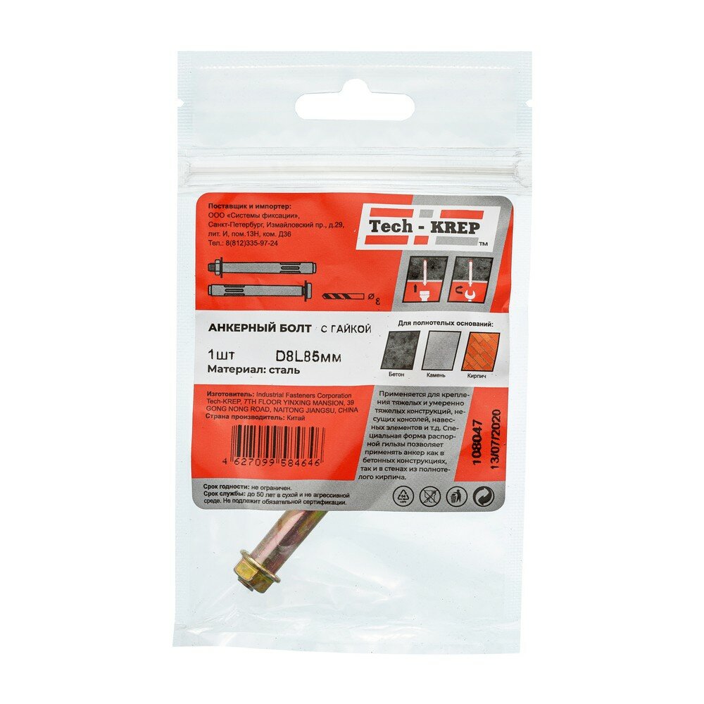 Купить Tech-KREP Болт анкерный с гайкой 8х85 пакет Tech-Krep 108047