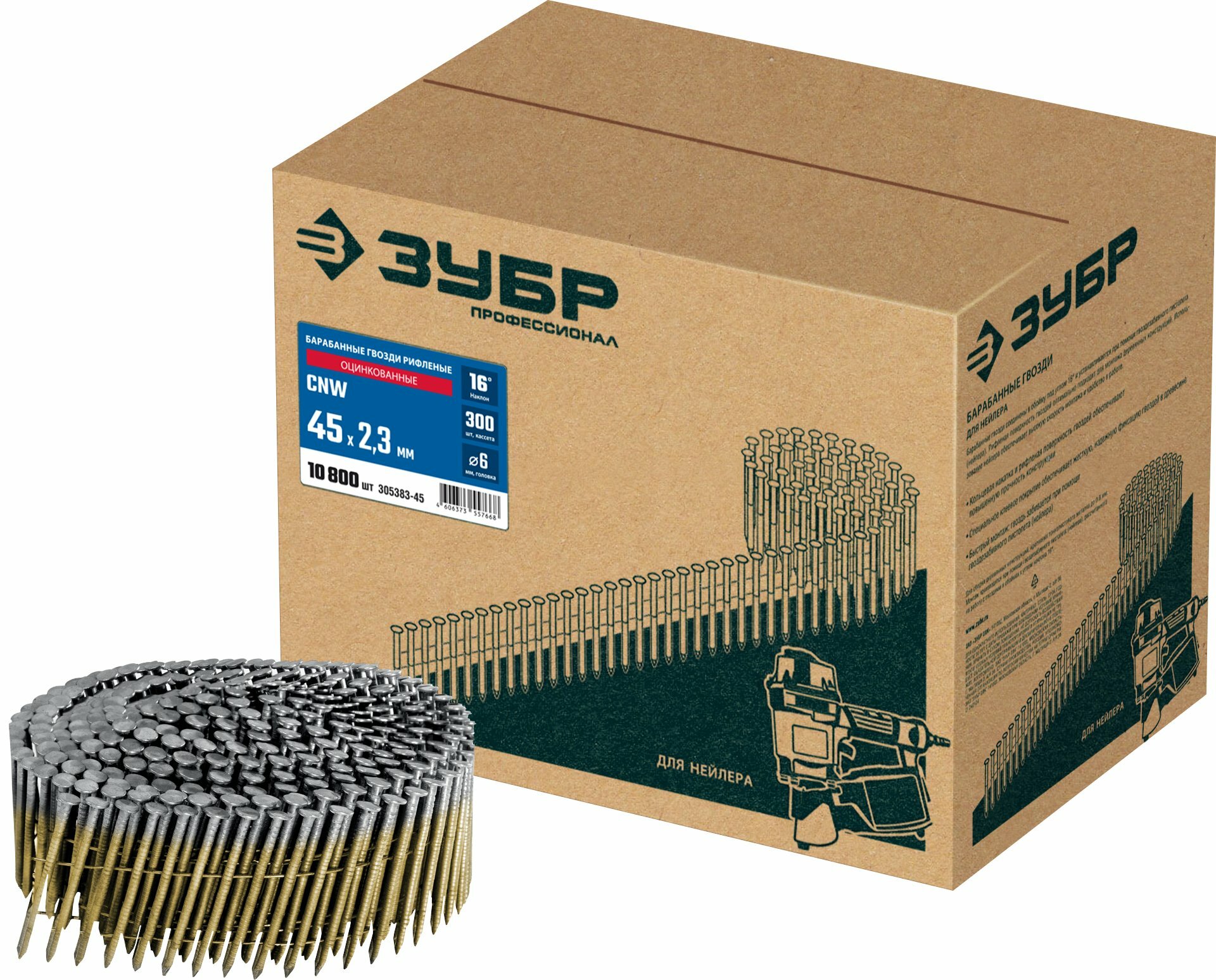 Купить ЗУБР CNW 45 х 2.3 мм, барабанные гвозди рифленые оцинкованные, 10800 шт (305383-45) (305383-45)
