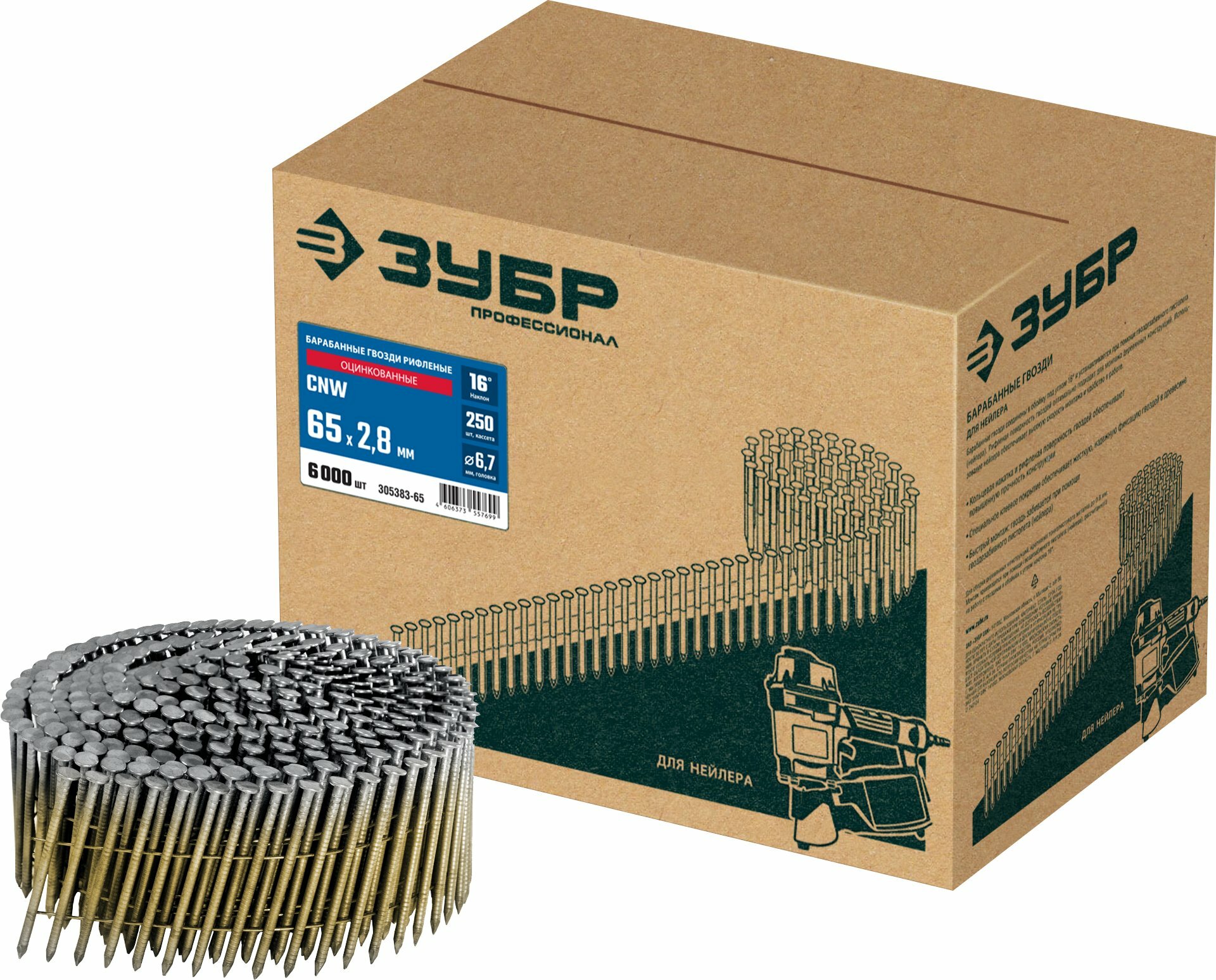 Купить ЗУБР CNW 65 х 2.8 мм, барабанные гвозди рифленые оцинкованные, 6000 шт (305383-65) (305383-65)