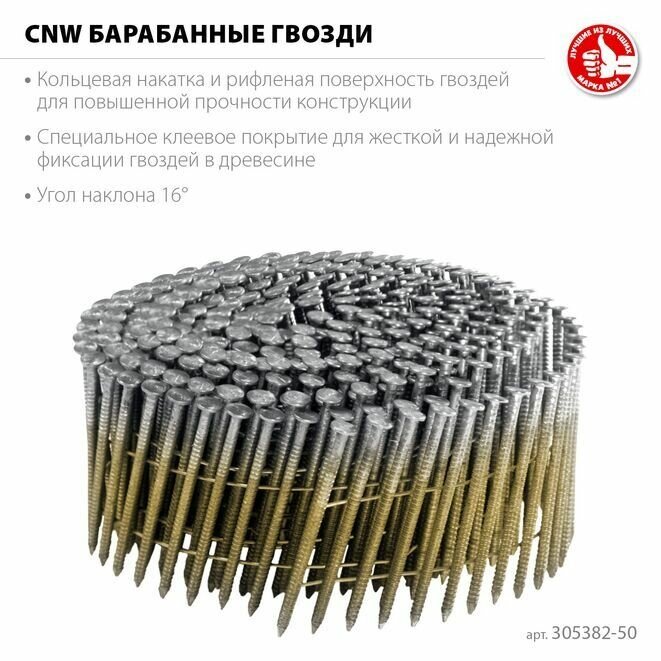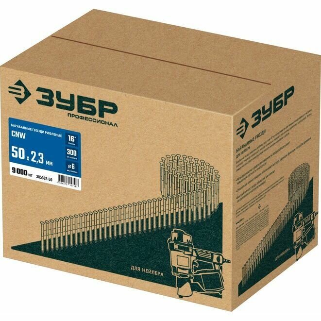 ЗУБР CNW 50 х 2.3 мм, барабанные гвозди рифленые, 9000 шт (305382-50) (305382-50)