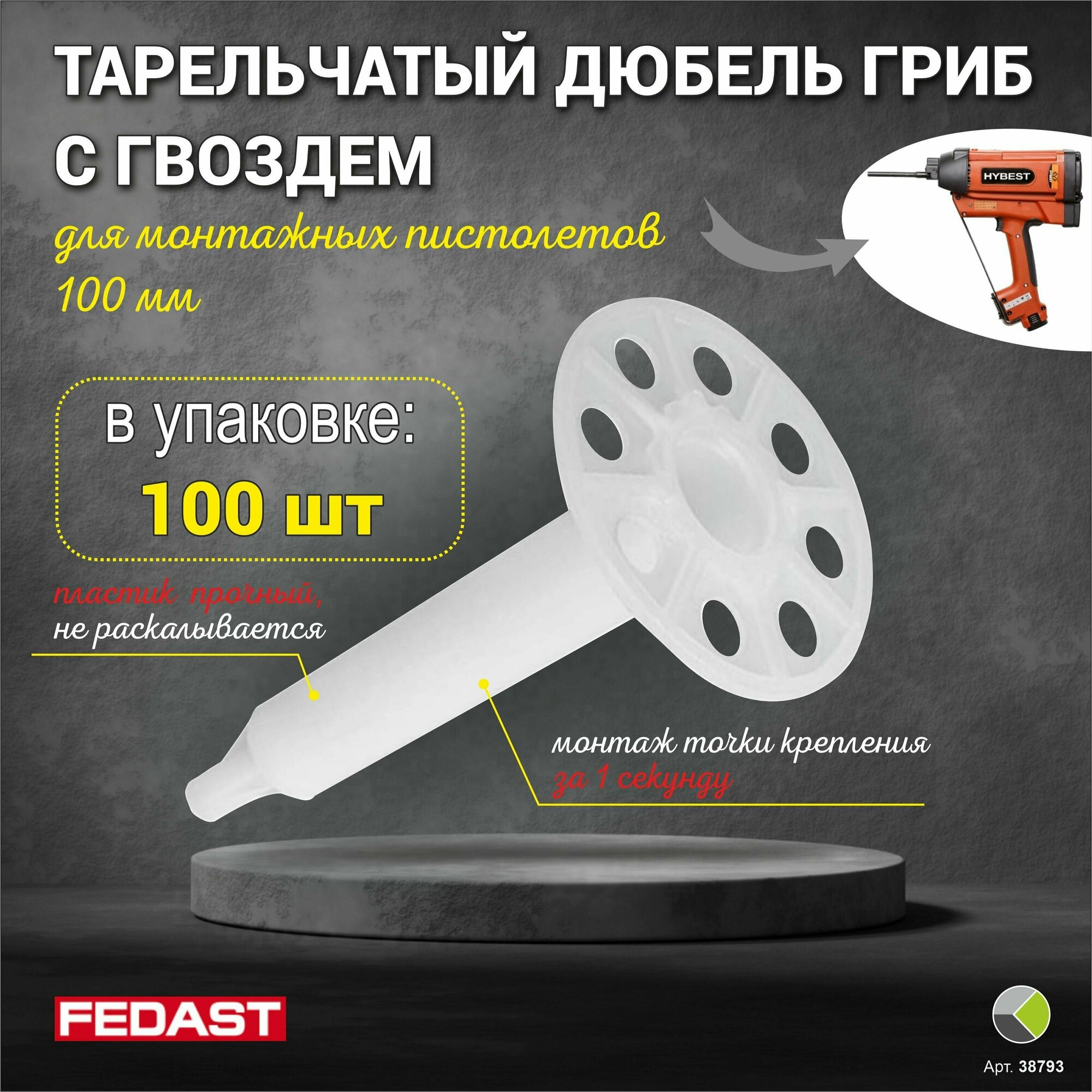 Тарельчатый дюбель гриб с гвоздем для монтажных пистолетов IN100 (100 шт/уп) FEDAST