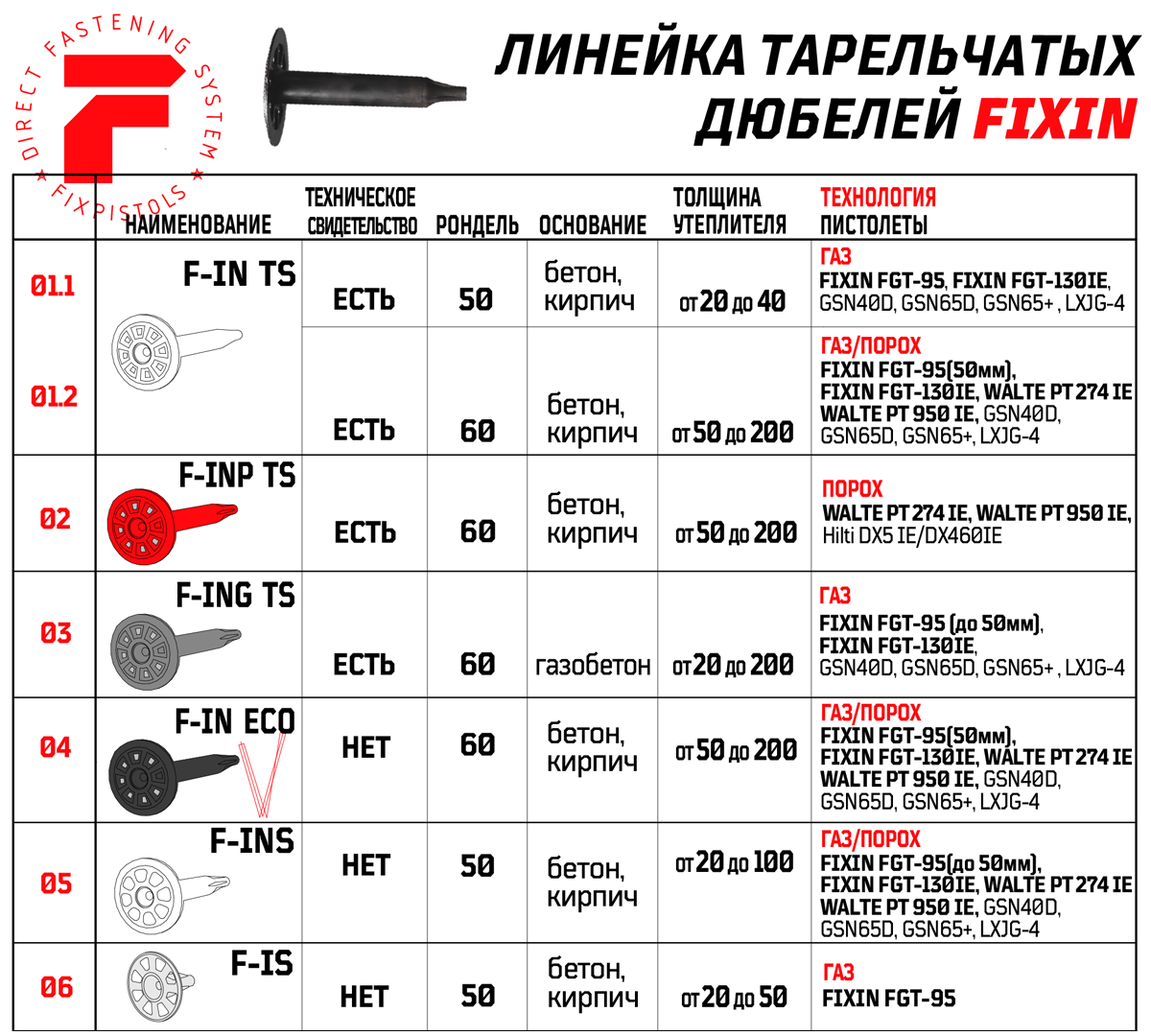 СохранитьТарельчатый дюбель гриб с гвоздем для монтажных пистолетов IN100 (100 шт/уп), FEDAST FD100IN (1 упак) интересное:
