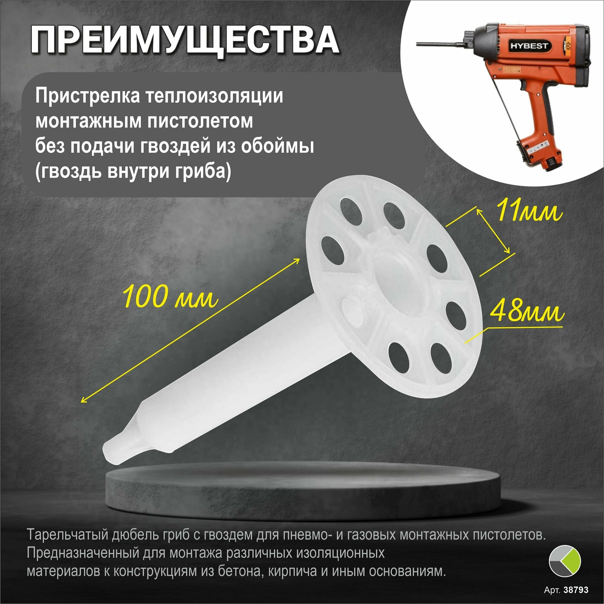 Тарельчатый дюбель гриб с гвоздем для монтажных пистолетов 20мм (уп/250шт)