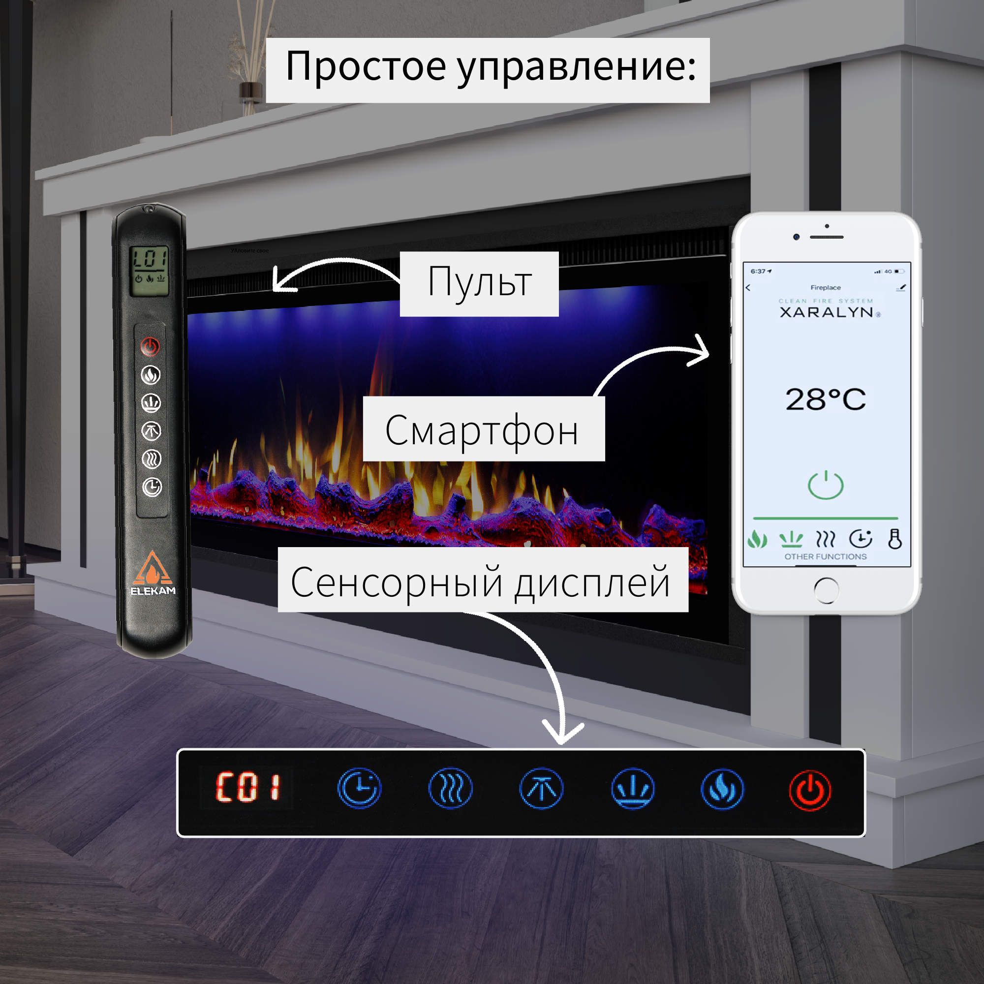 Камин электрический напольный ELEKAM NEO Breeze 50 с очагом и порталом, с пультом, обогревом и имитацией огня (Электрокамин) интересное: