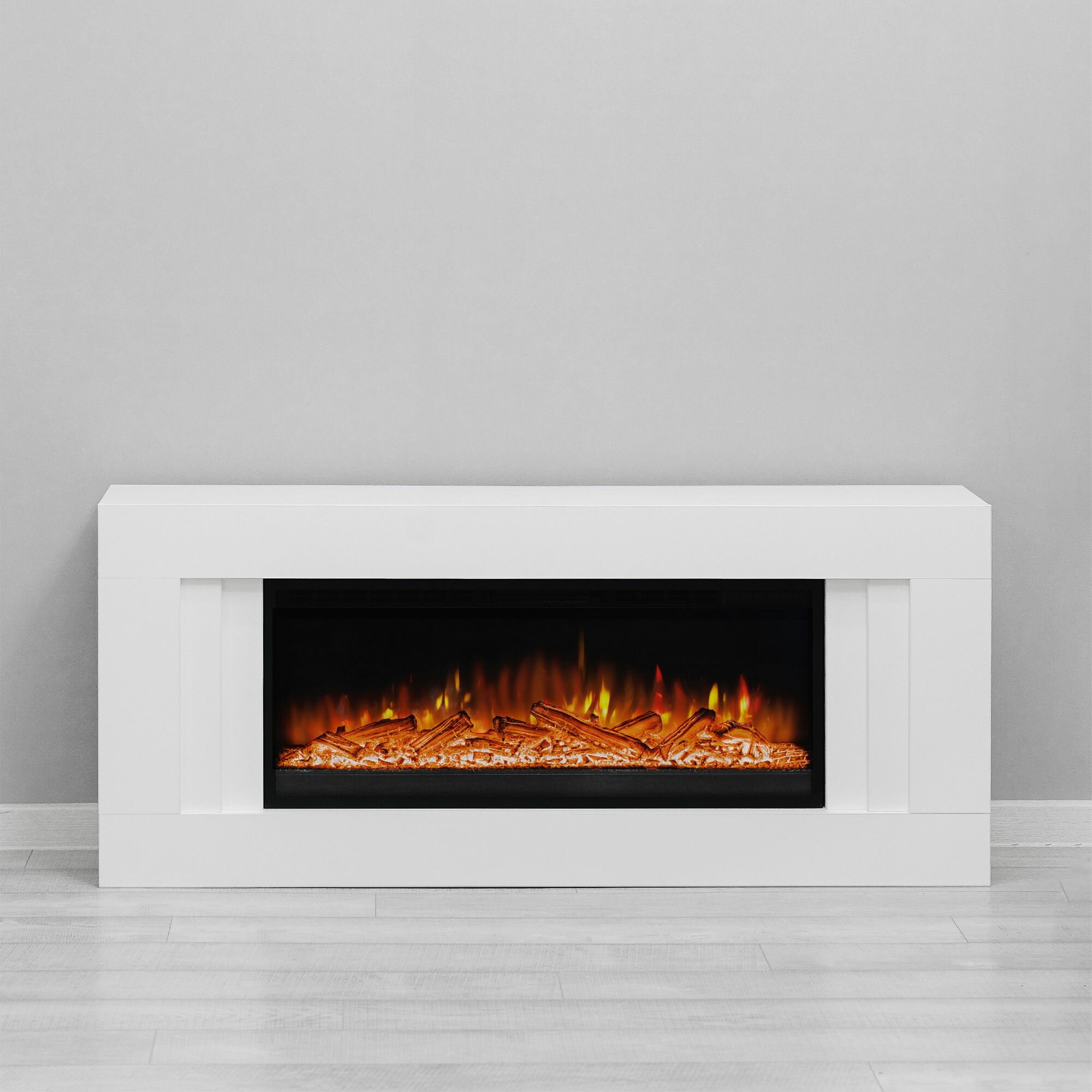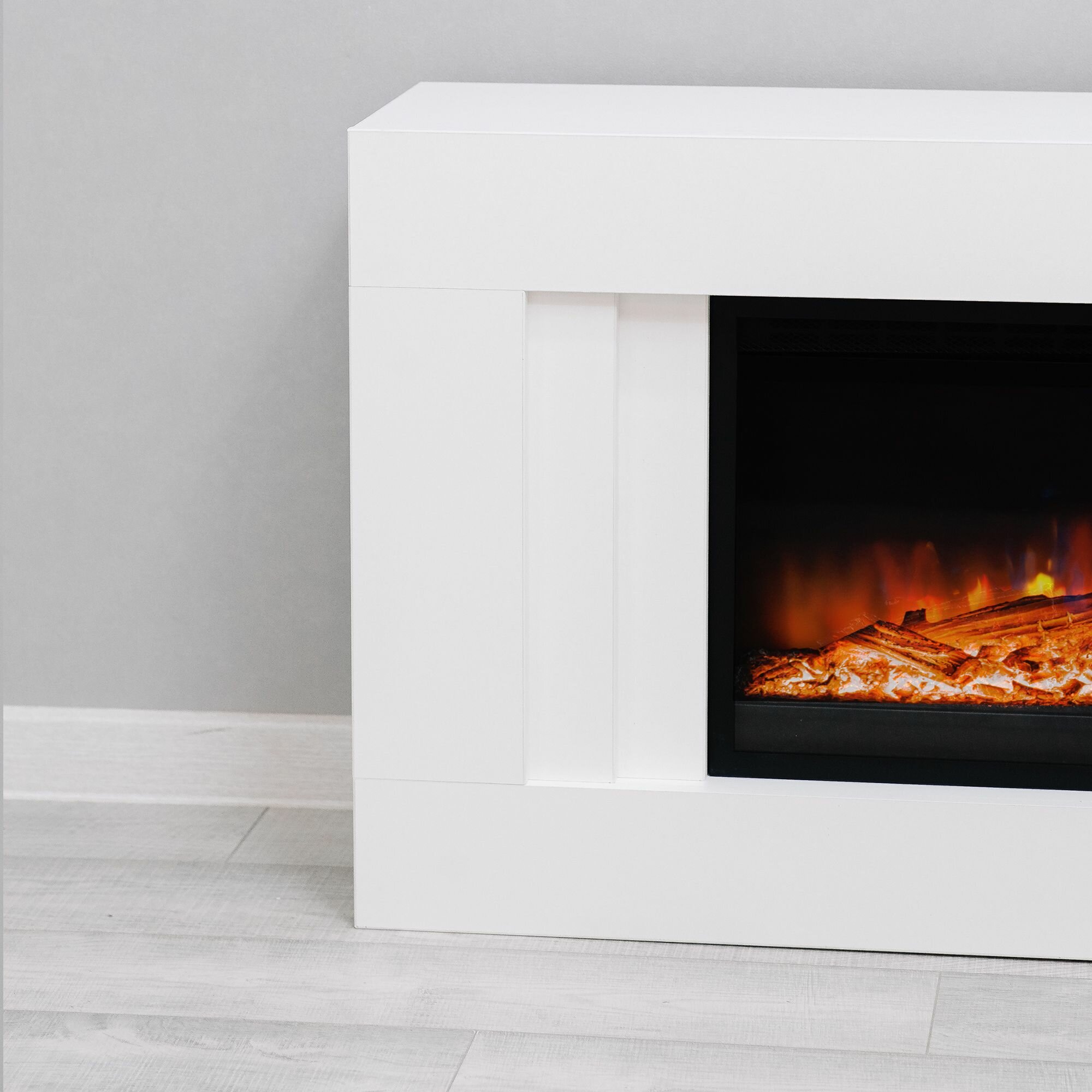 Купить Камин электрический от ELEKAM Lines белый с очагом Pulsar 38 с дровами с обогревом и звуком потрескивания дров (Электрокамин)