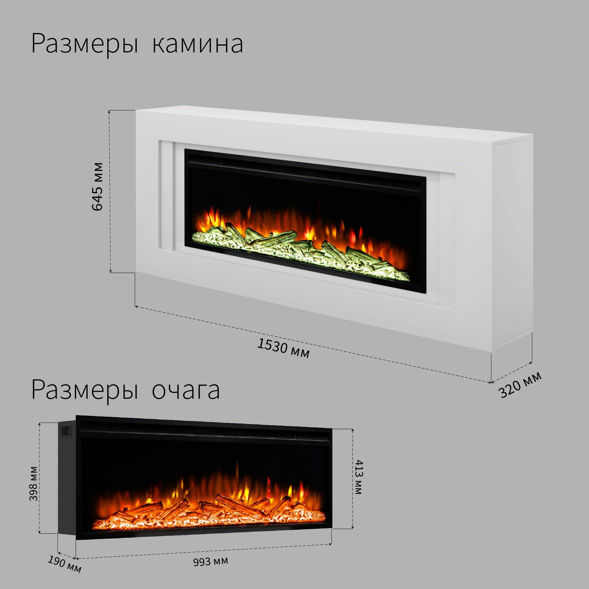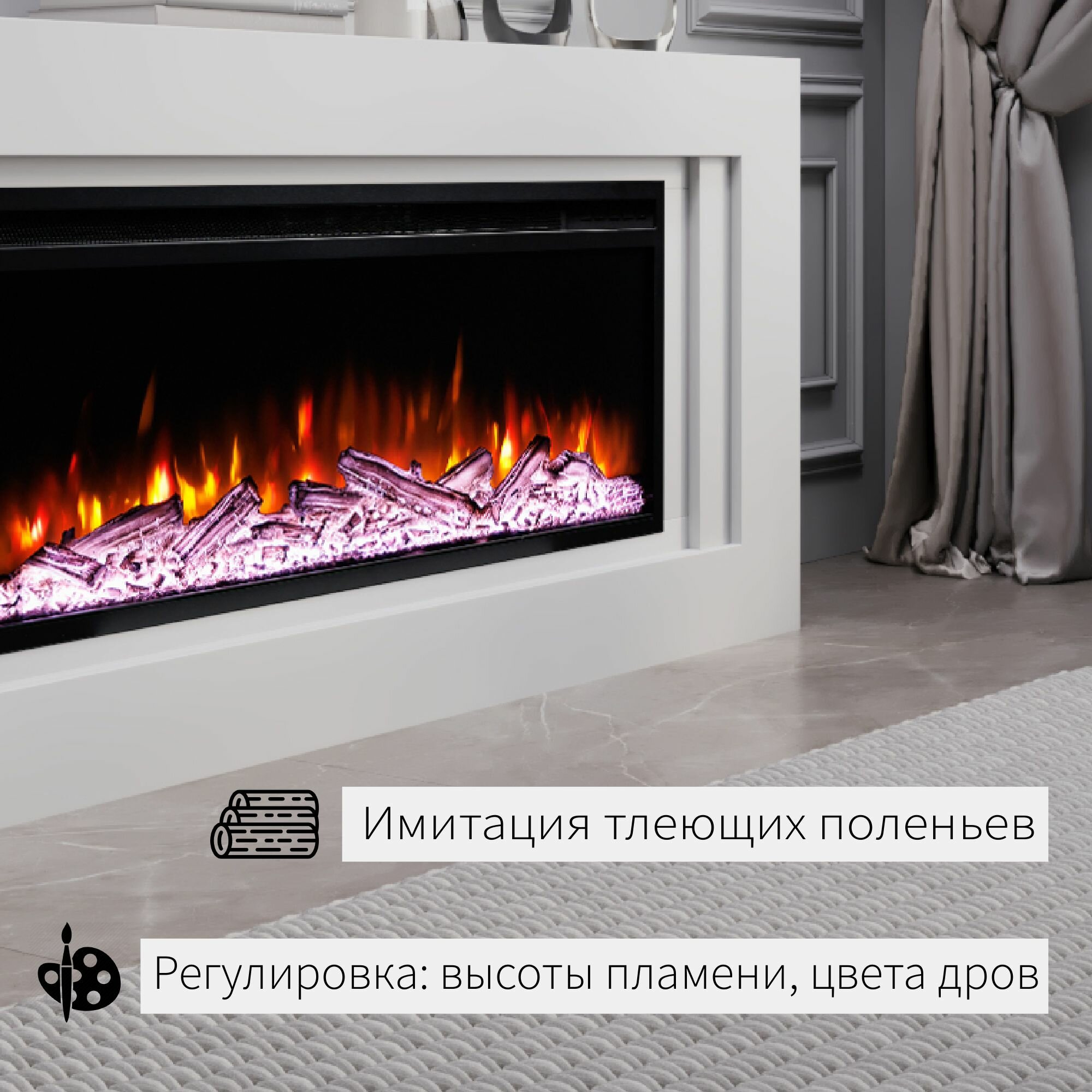Камин электрический от ELEKAM Lines белый с очагом Pulsar 38 с дровами с обогревом и звуком потрескивания дров (Электрокамин) интересное: