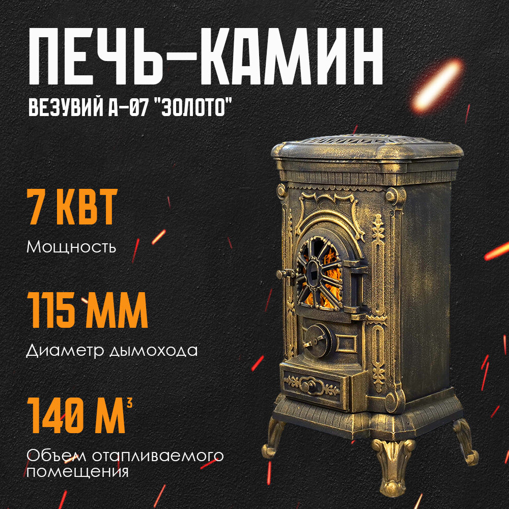 Печь-камин Везувий А-07 "Золото" диаметр дымохода: 120 мм