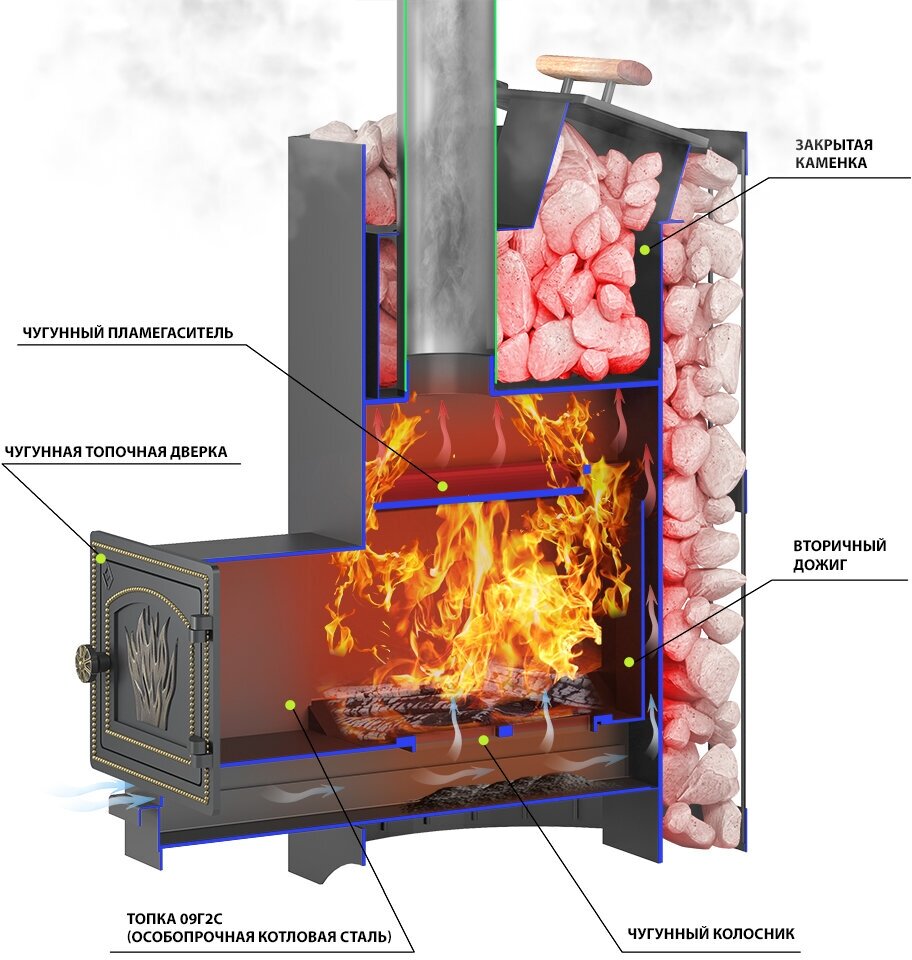 Банная печь везувий Скиф с закрытой каменкой Ковка (210) "М" интересное: