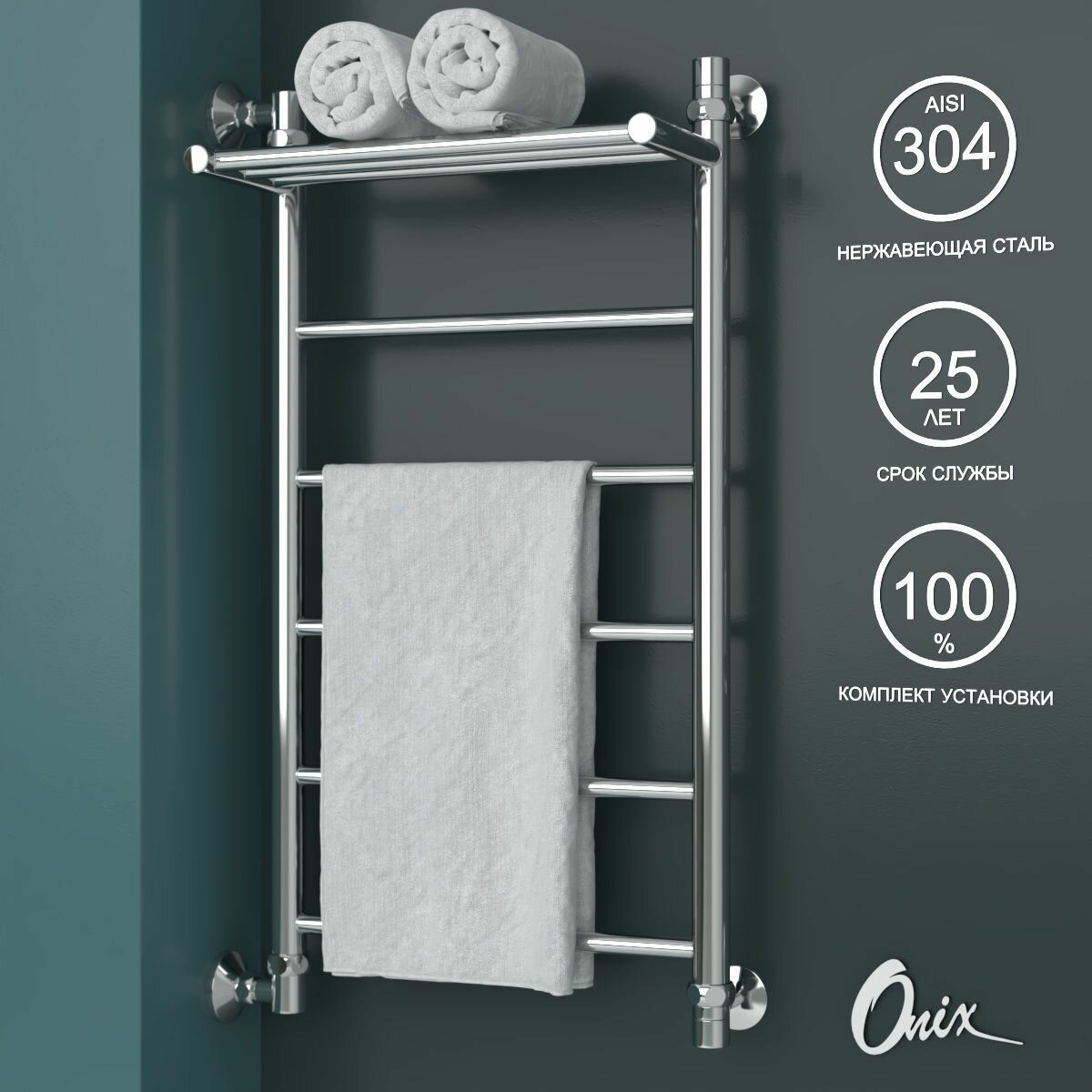 Полотенцесушитель Водяной Onix, модель Classic Plus с нижним подключением 400x800, полный комплект, нижнее подключение