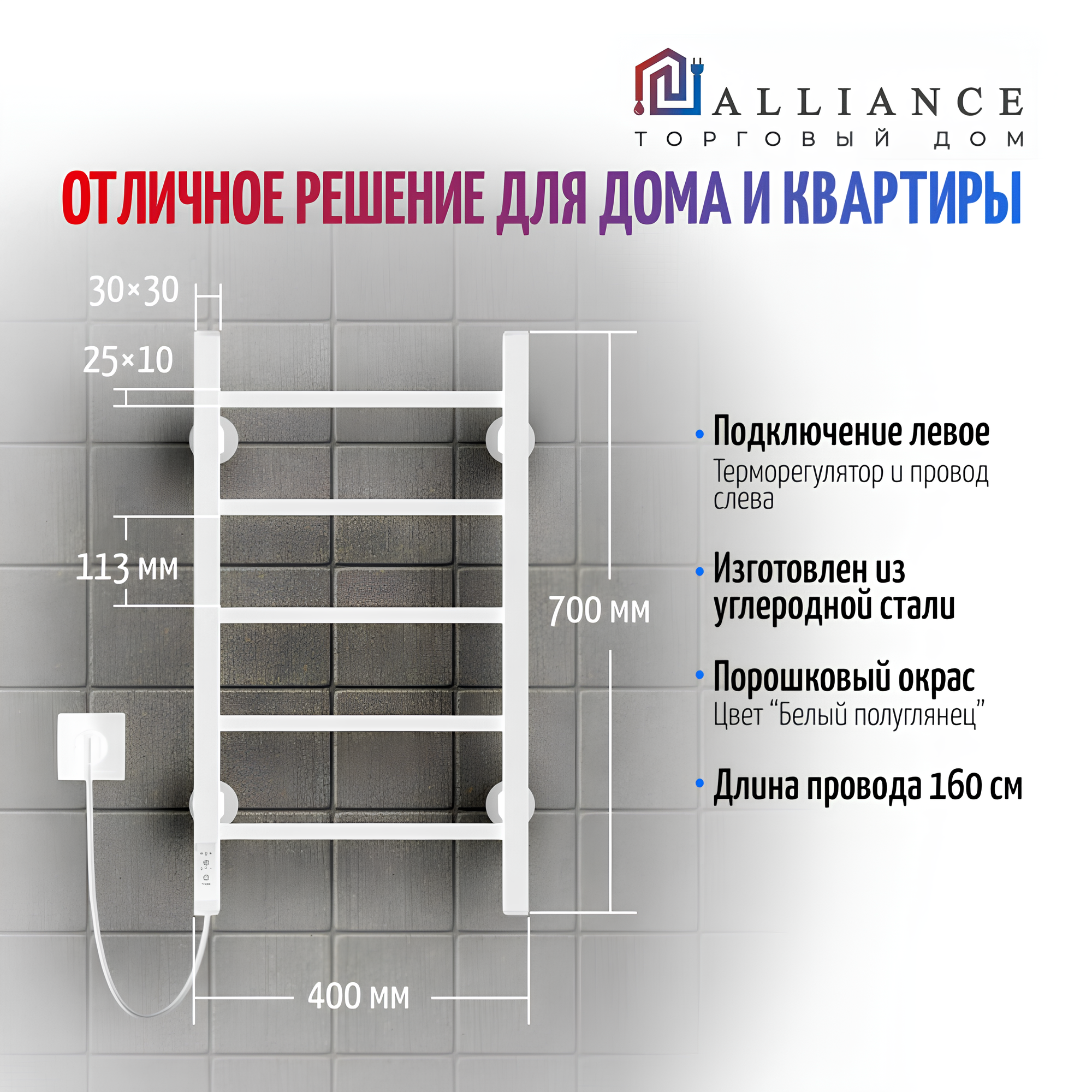 Полотенцесушитель Электрический 400мм 700мм форма Лесенка белый левый интересное: