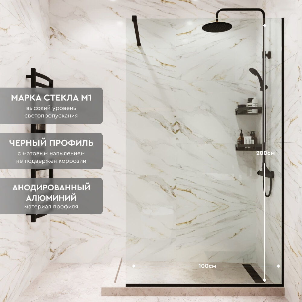 Купить Душевая перегородка Walk In MEBELVANN 1000x2000 черный профиль прозрачное стекло 8 мм