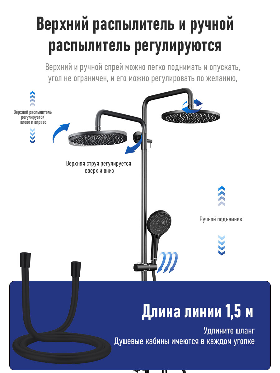 GAPPO Душевой комплект с регулировкой температуры и холода с полочкой чёрный металл YG2496-26 интересное: