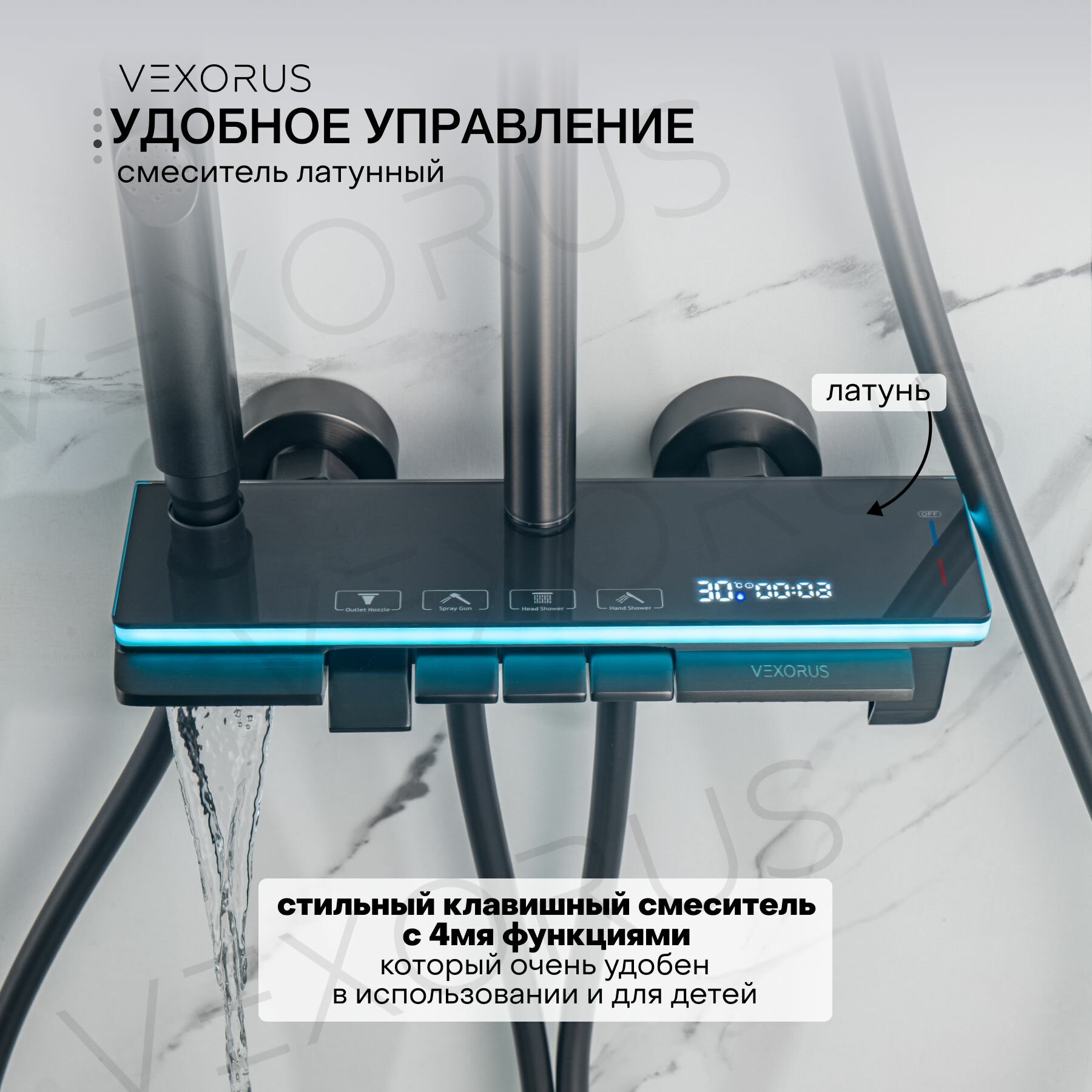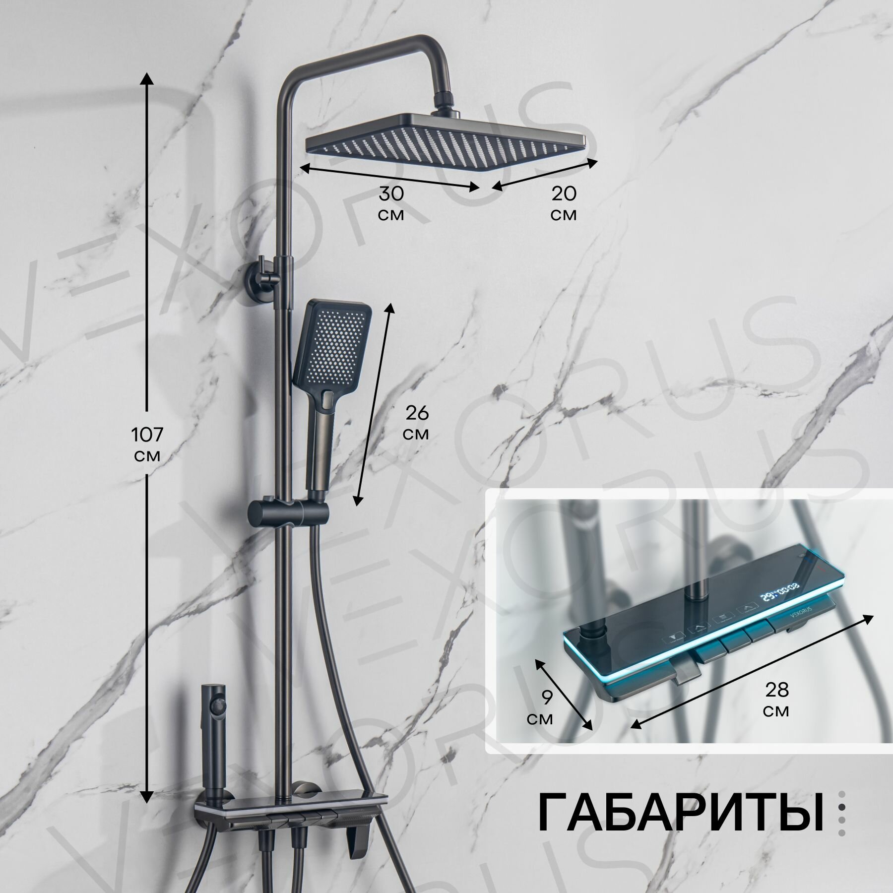 Душевая система Vexorus с тропическим душем и смесителем, датчиком температуры,комплект 4 в 1
