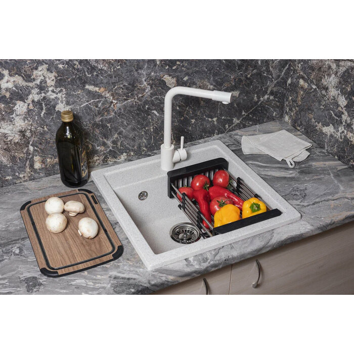 Кухонная мойка (сифон в комплекте) кварцевая врезная прямоугольная 51х50,5 см Reflexion Zia RX1251WH, цвет - белый