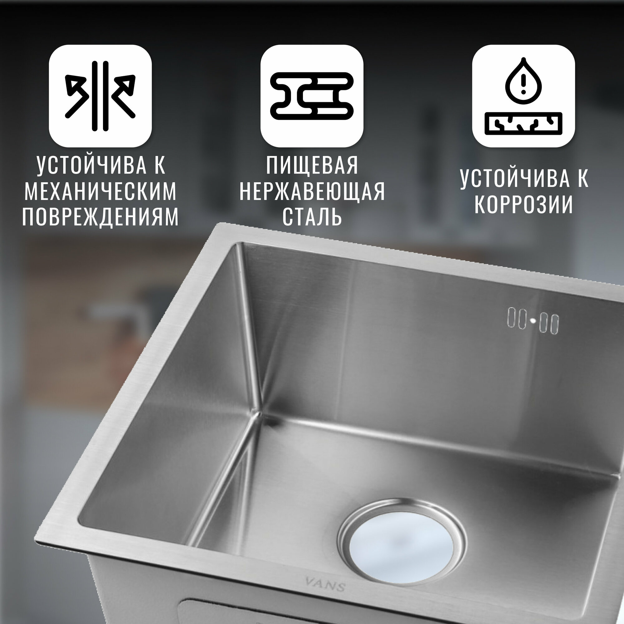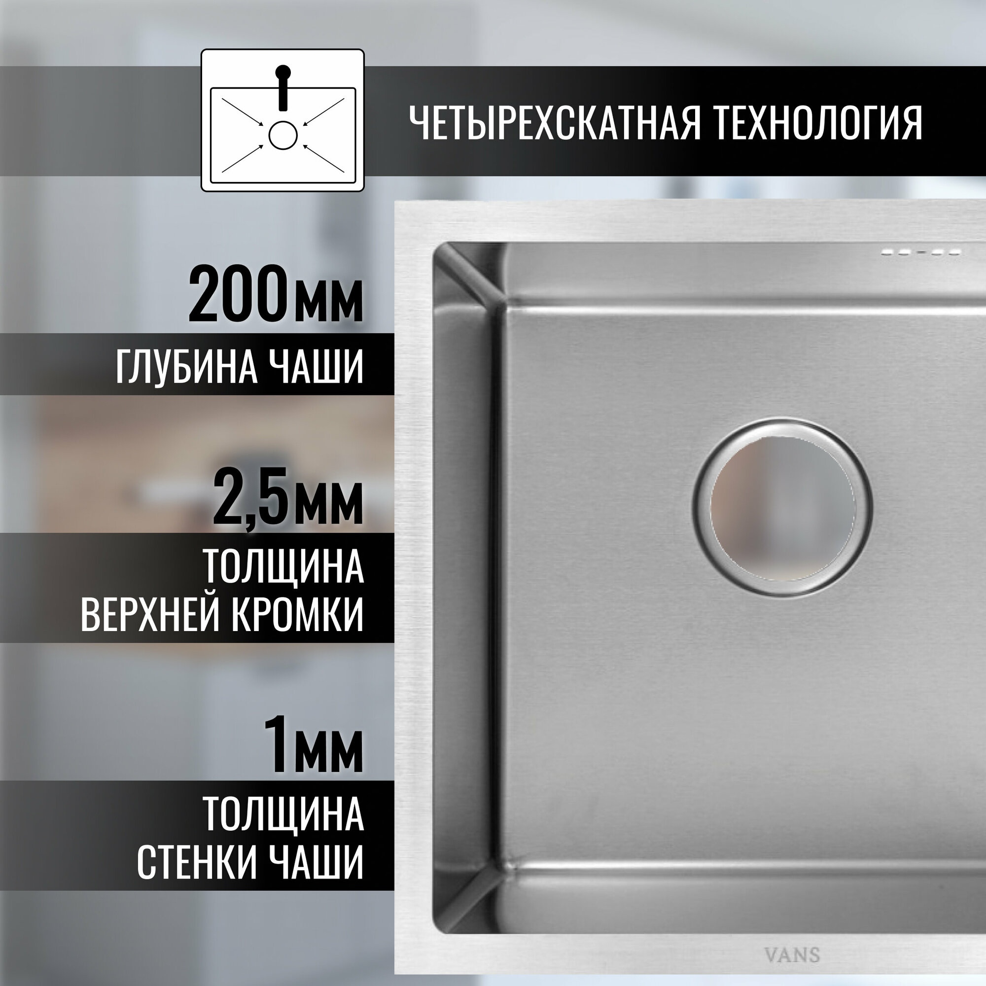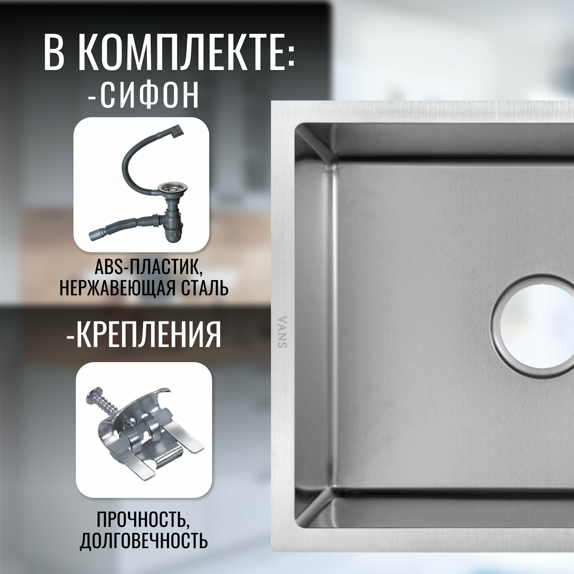 Кухонная мойка подстольный монтаж "VANS" 440*440*200 мм Satin интересное: