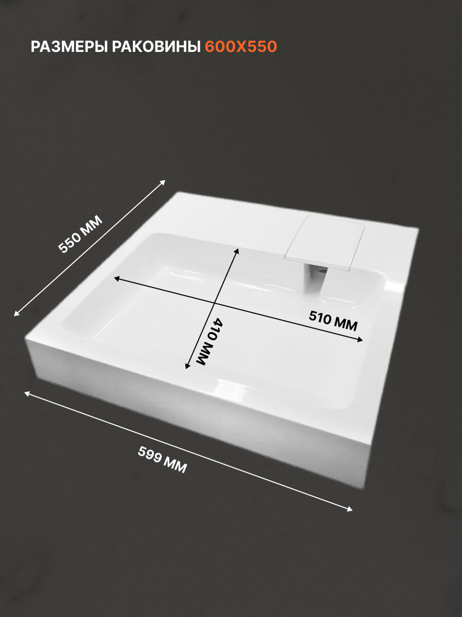 Раковина над стиральной машиной 60х55 Стандарт 55, цвет белый, литьевой мрамор