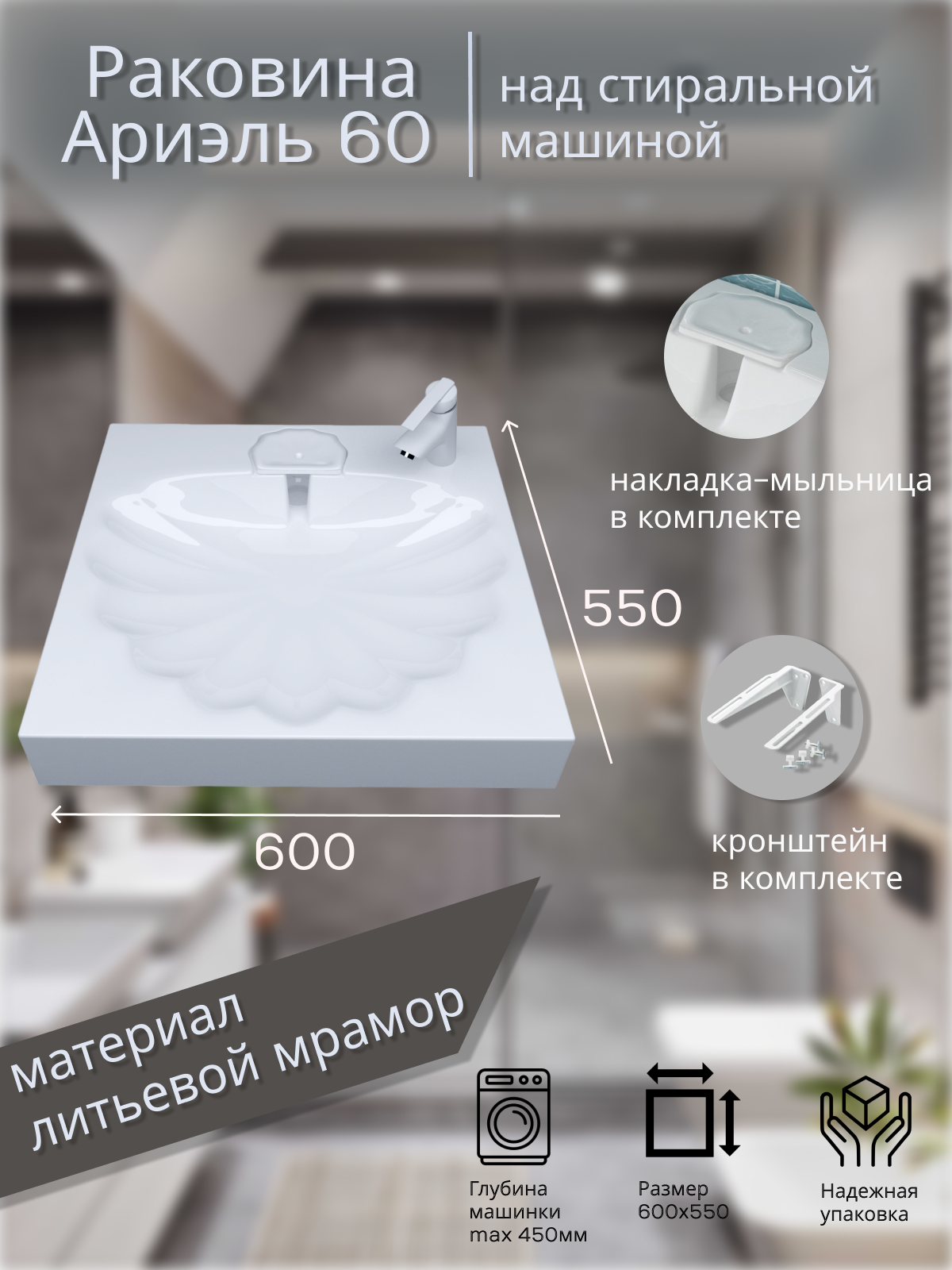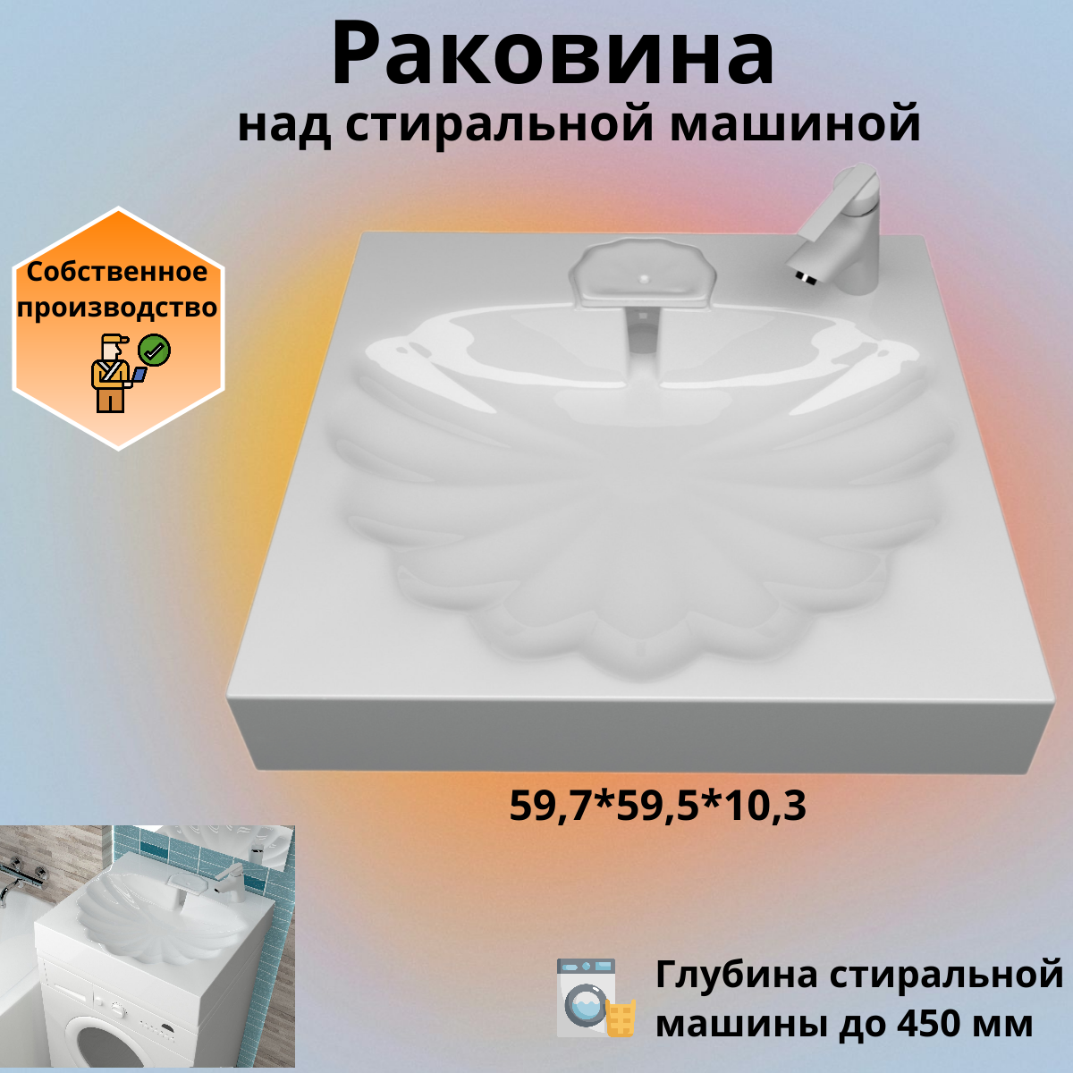 Раковина над стиральной машиной Ариэль 60 интересное: