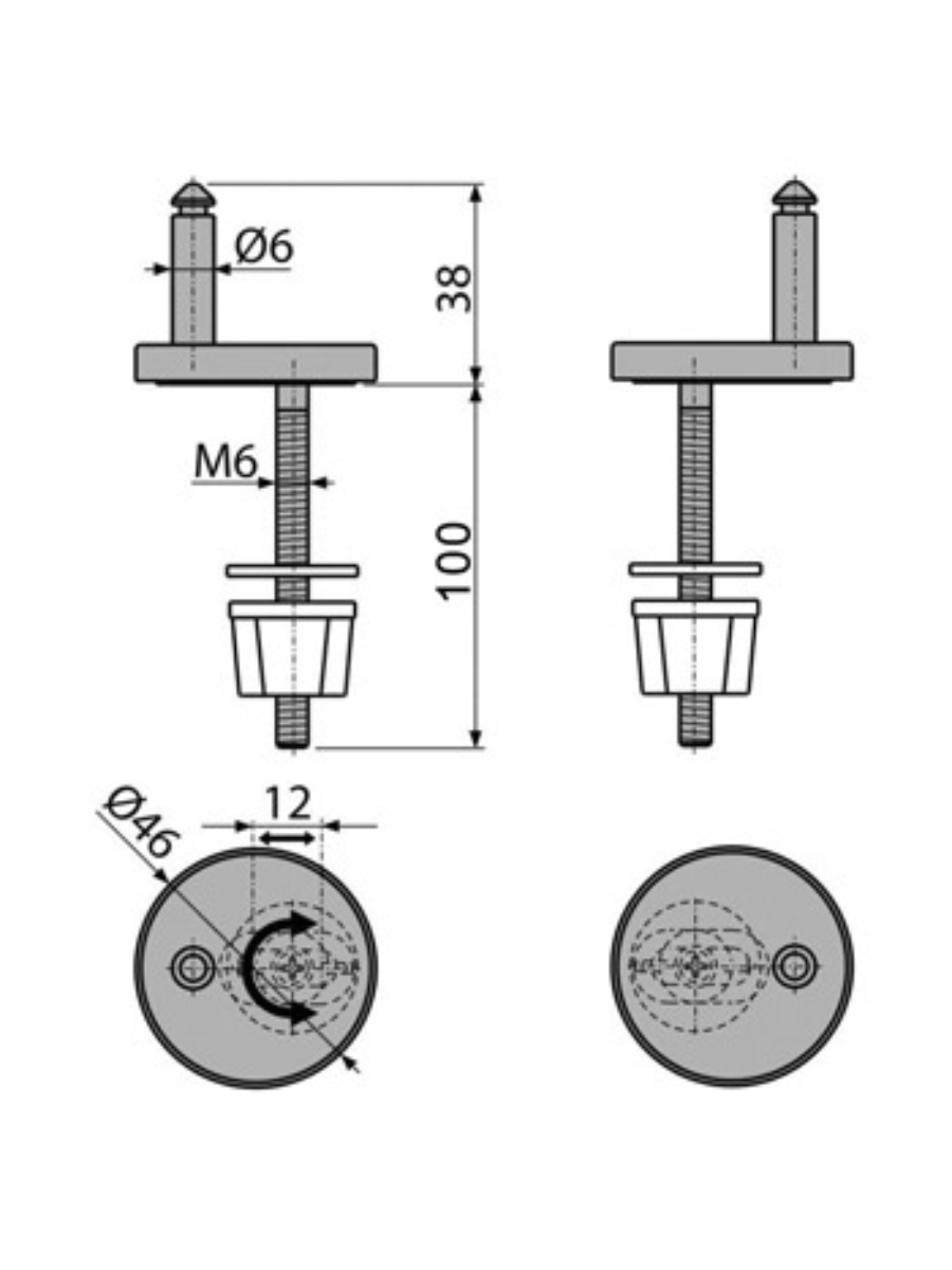 | Дополнительная информация | диаметр посадочных отверстий: 10 мм ; диаметр шпильки: 6 мм; длина шпильки: 100 мм; |